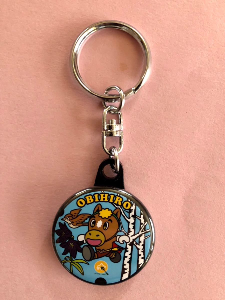 ばんえい十勝の大人気のキャラクター「リッキー君」と帯広市の花:クロユリ 木:しらかば 鳥:雲雀(ひばり)がデザインされています。