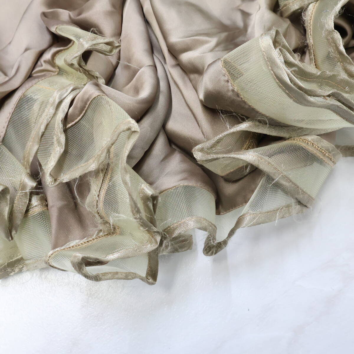 | 商品状態 | 【商品状態】 大きく目立つような傷は御座いませんが ブラトップのアンダーストラップに破れ、金具部分に錆、 スカートの裾にほつれがあります 使用品となりますので、 小傷、擦り傷、小汚れなどはご了承ください。 |