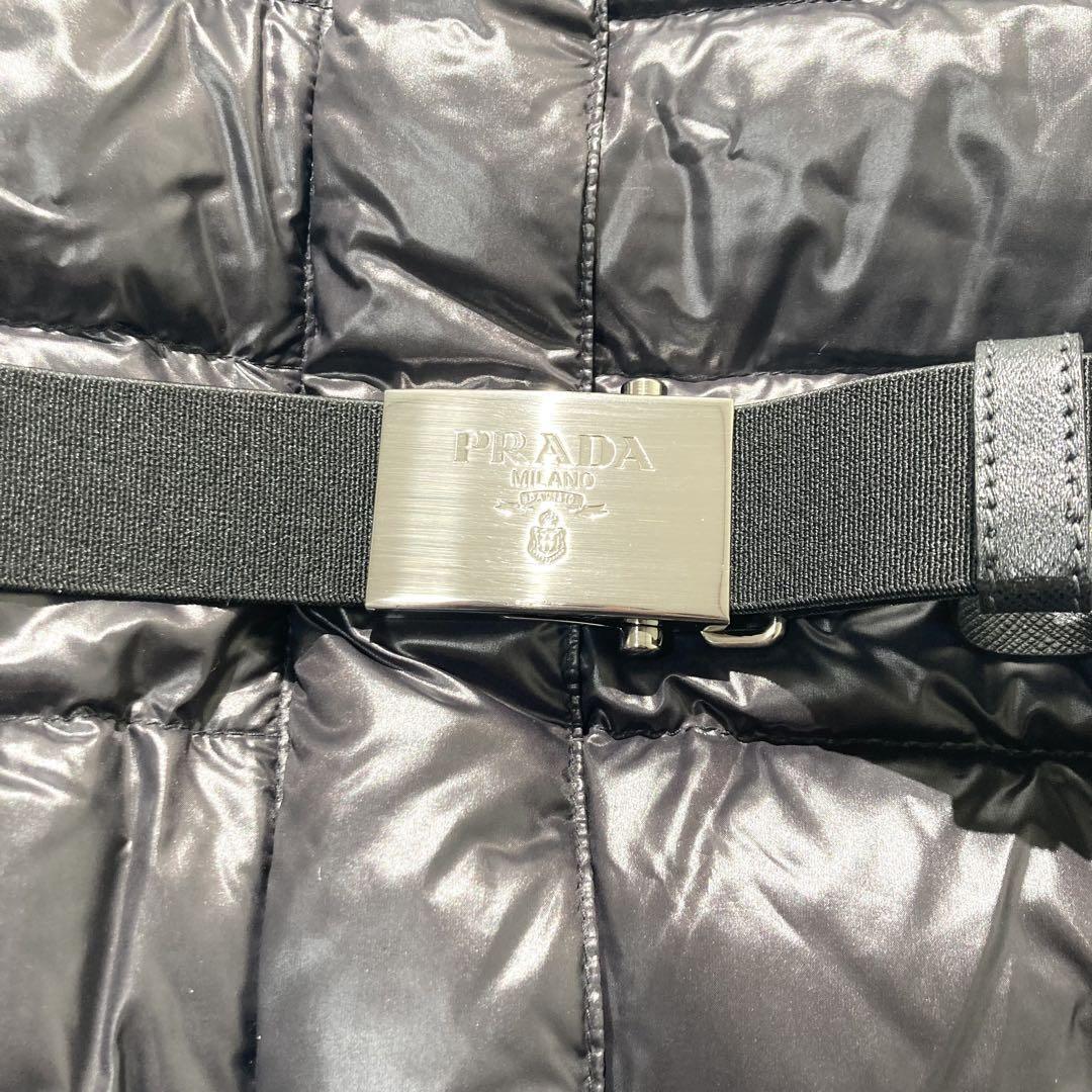 プラダスポーツのベルト付きダウンジャケットです。ブラックなので着回しがしやすく、コーデを気にせず普段使いしていただけます。