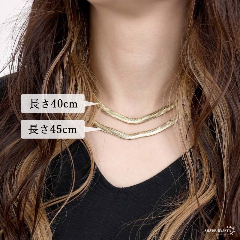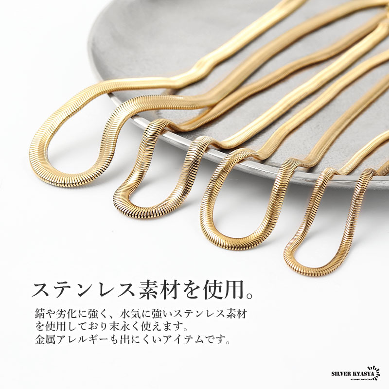 滑らかなフォルムが大人な雰囲気たっぷりのスネークチェーン。