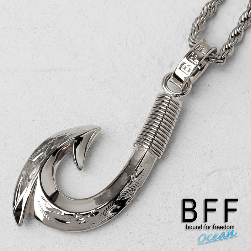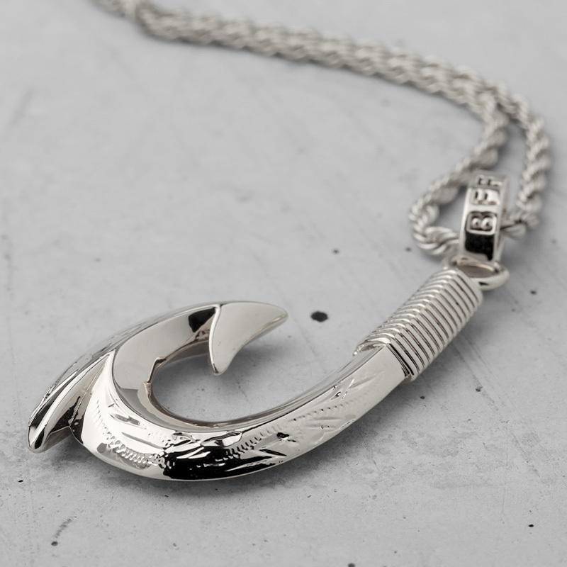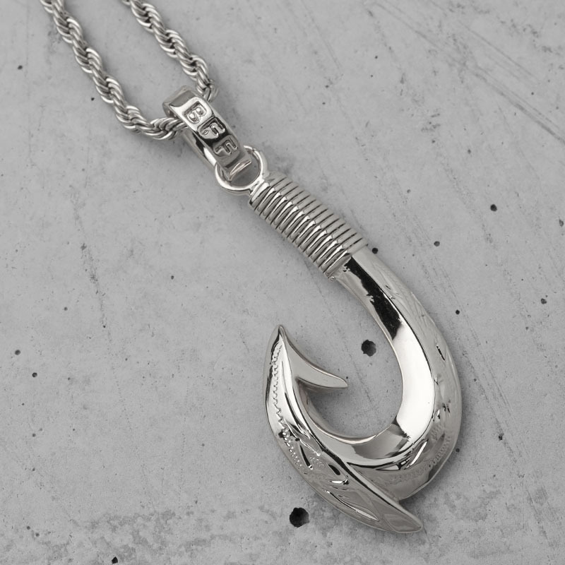 | 商品概要 | ■釣り針トップ&ハワイアン 「幸せを釣り上げる」や「幸運を逃さない」などの意味があるフィッシュフック(釣り針)をモチーフとしたトップにハワイの自然を感じられるスクロールとマイレをレリーフしたネックレス。 |