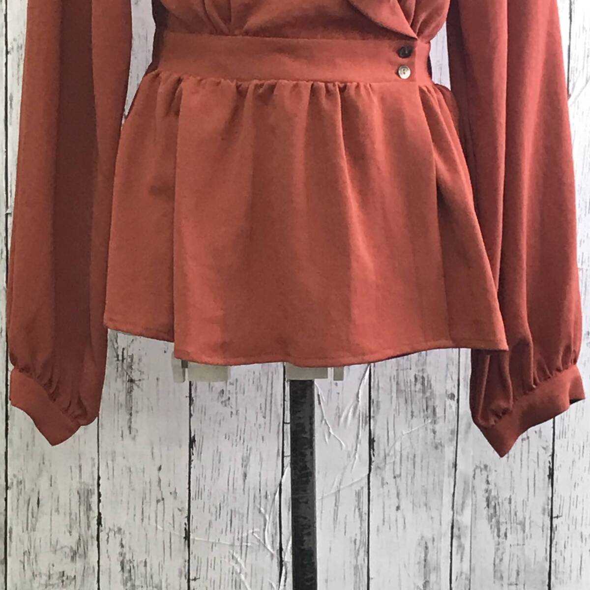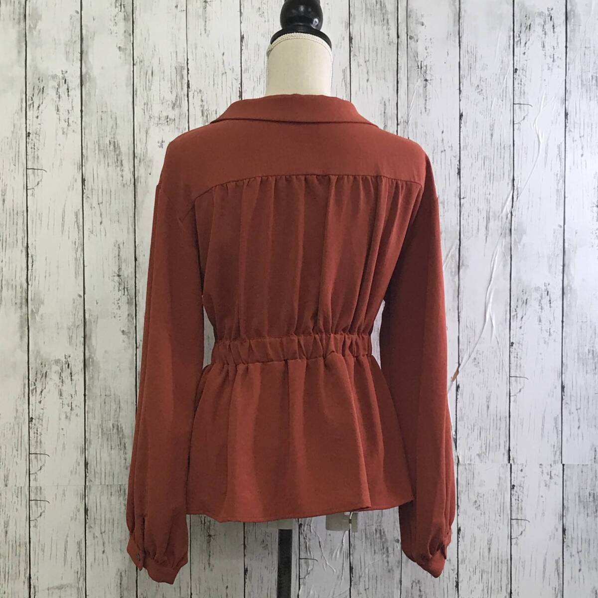 商品説明 | 商品名/ブラウス サイズ/M 着丈62cm 身幅44cm 肩幅49cm 袖丈52cm 素材/ポリエステル100% 商品状態/目立った傷、汚れ無し |