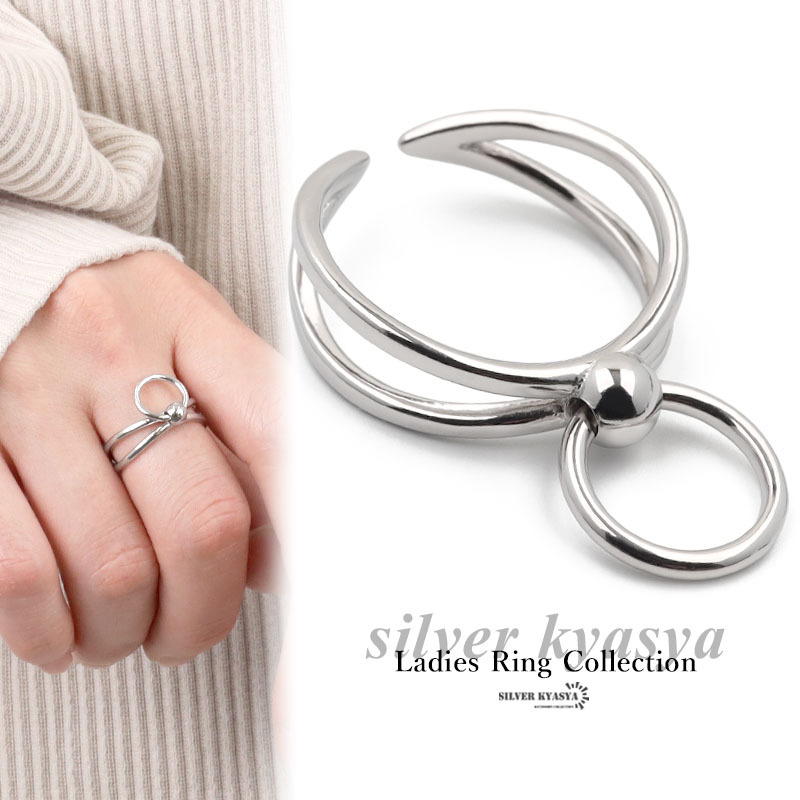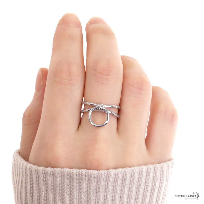 ■マルカンがアクセントのお洒落リング二連風になった、シンプルなシルバーリングの中央で揺れる、マルカンがお洒落なアイテム。カジュアルからフェミニンまで、幅広いテイストのファッションと合います。シンプルなので、ほかのリングとも合わせやすくて万能。