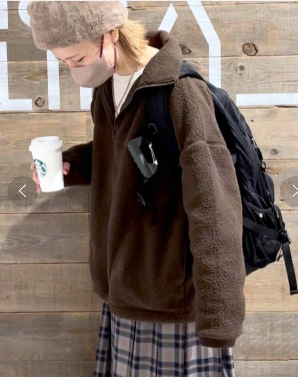 studio CLIP☆ボアハーフジッププルオーバー☆スタジオクリップ☆ボア☆フリース☆フリー☆ブラウン系