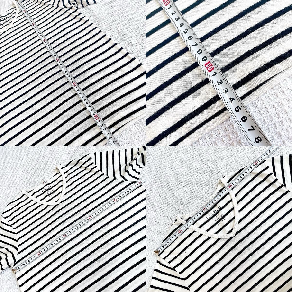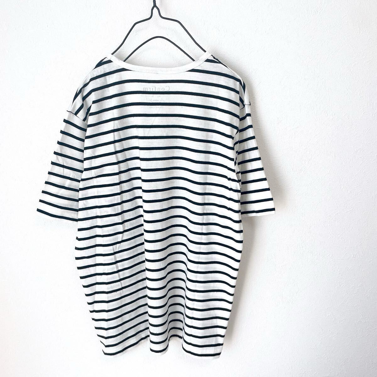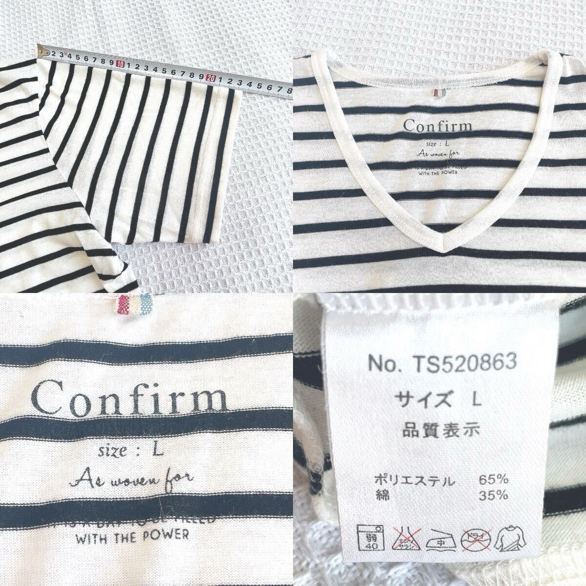 Confirmコンファーム半袖TシャツLサイズ黒ブラック白ホワイト ボーダーVネックV首コットン綿ポリエステル ストレッチ カットソートップス
