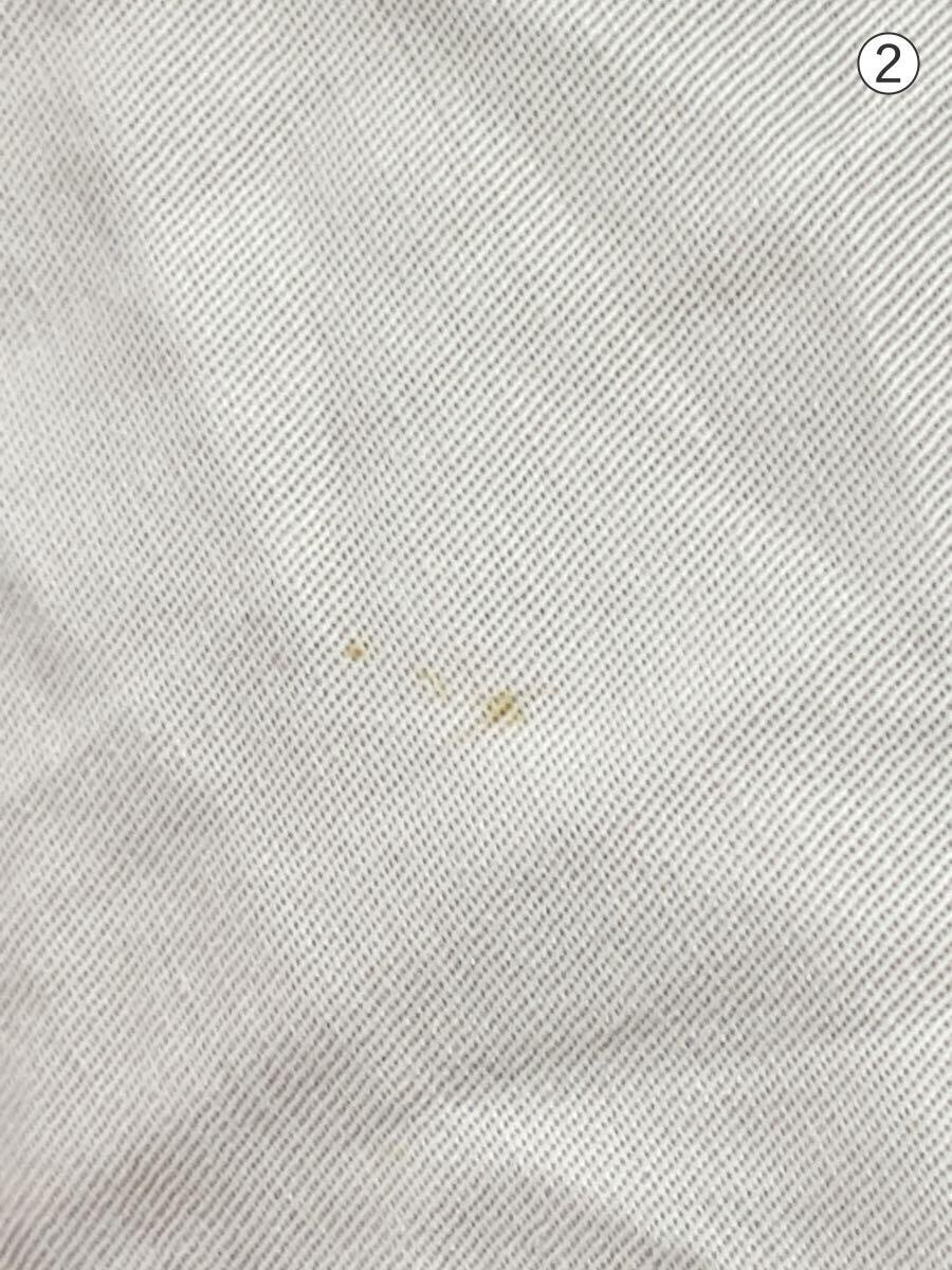 | (1)シミあり (2)シミあり 左袖やフロント裾に薄汚れがござますが、まだまだご愛用頂けるお品物です。 |