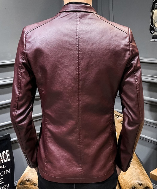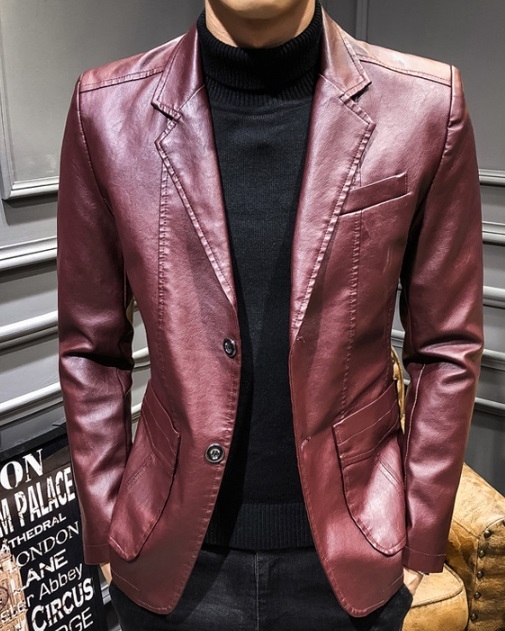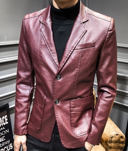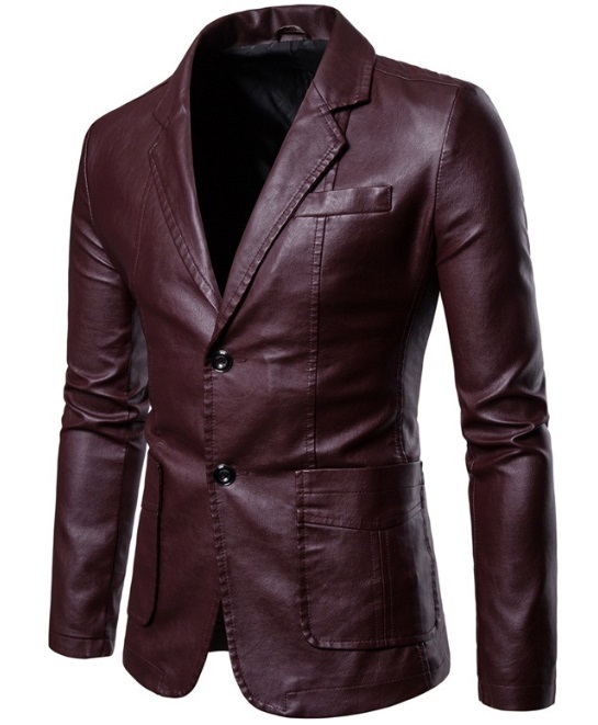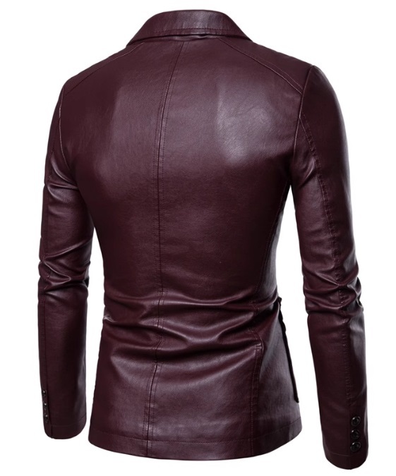 新販売 テーラードジャケット メンズ ブレザー PU革ジャン スリム 紳士 アウター おしゃれ ワインレッド/XL