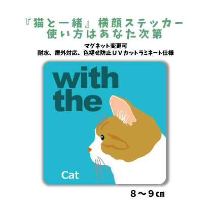 茶白猫 茶シロ猫『猫と一緒』【玄関 車 ポスト】ステッカー 名入れ マグネット変更可 屋外 防水 カスタマイズ