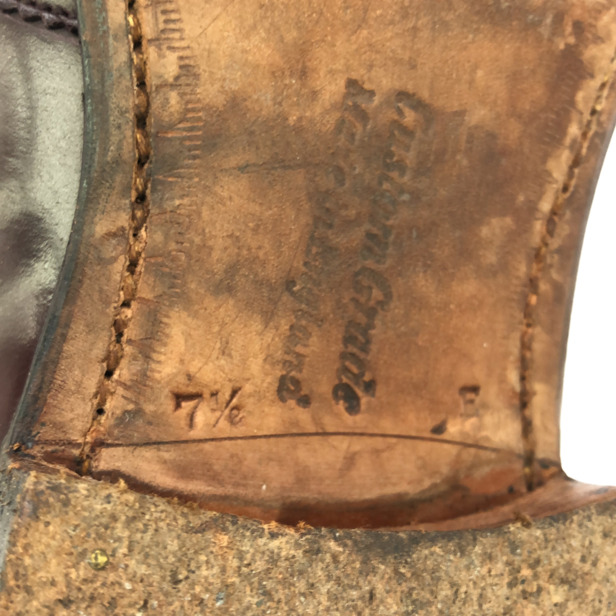 | STAFF COMMENT | 80年代頃の旧Church's ウィングチップタッセルローファーです。インソールにLONDON、NEW YORK、PARISの3都市が入るころのモデルです。アッパーに小傷などが見られ、履き口にもスレなどございます。ソール減りは少な目でコンディションは良好かと思われます。7.5E表記(UK企画であれば26cm)ですが、ワイズが狭いので25.5cm位で、足の甲が低く幅が広くない方に良いサイズ感だと思われますChurch'sでSサイズのシューキーパーも付属します。その他箱などの付属品はございません。 |