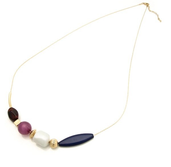 様々なフォルムのパーツを組み合わせたカラフルなデザインがおしゃれなロングネックレス
