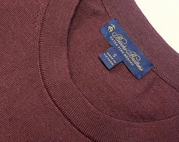 「BROOKS BROTHERS (ブルックスブラザーズ) 」の メリノウール クルーネックセーター MERINO WOOL CREW-NECK KNIT SWEATER ニット burgundy S ハイゲージ トップス おしゃれ アメトラ トラッド ゴルフ GOLF コンサバ ドレス Dress ビジネス 赤茶 ワイン です。