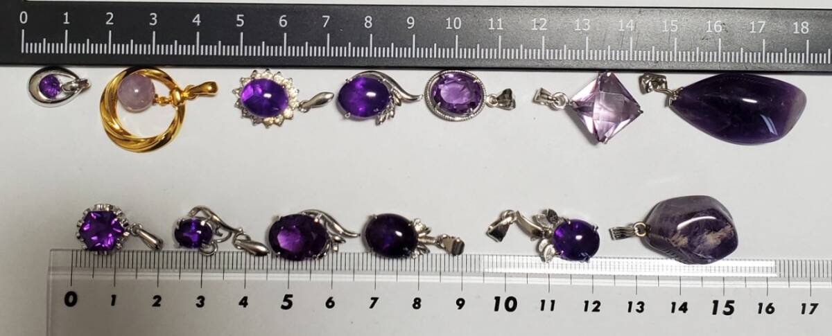 1円から アメジスト ペンダントトップ 13点 まとめて レディース 33,2g