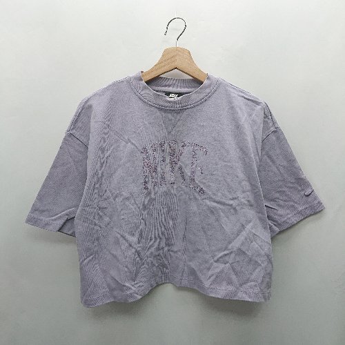 ◇ ⊂ NIKE ナイキ ロゴ刺繍 ショート丈 半袖 Tシャツ サイズXL ラベンダー系 レディース E