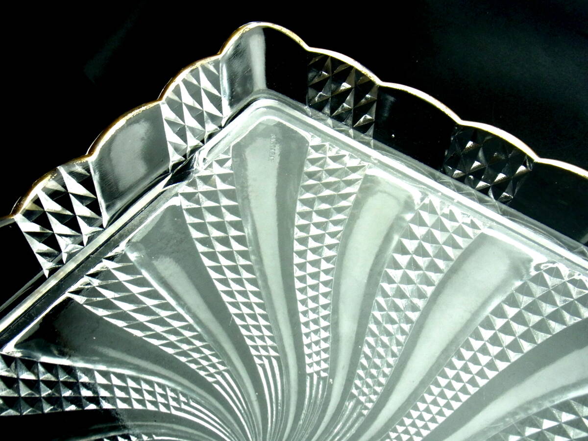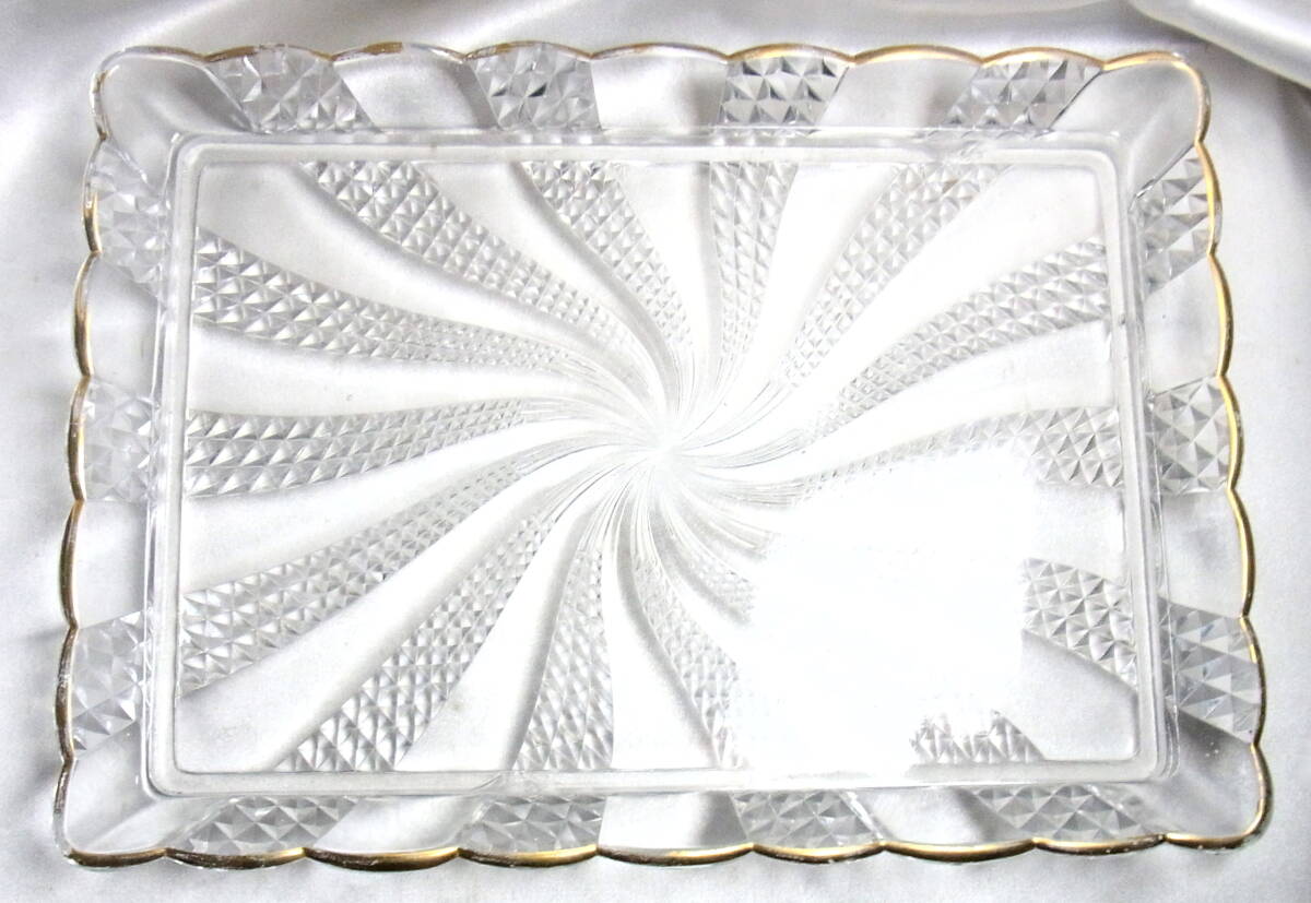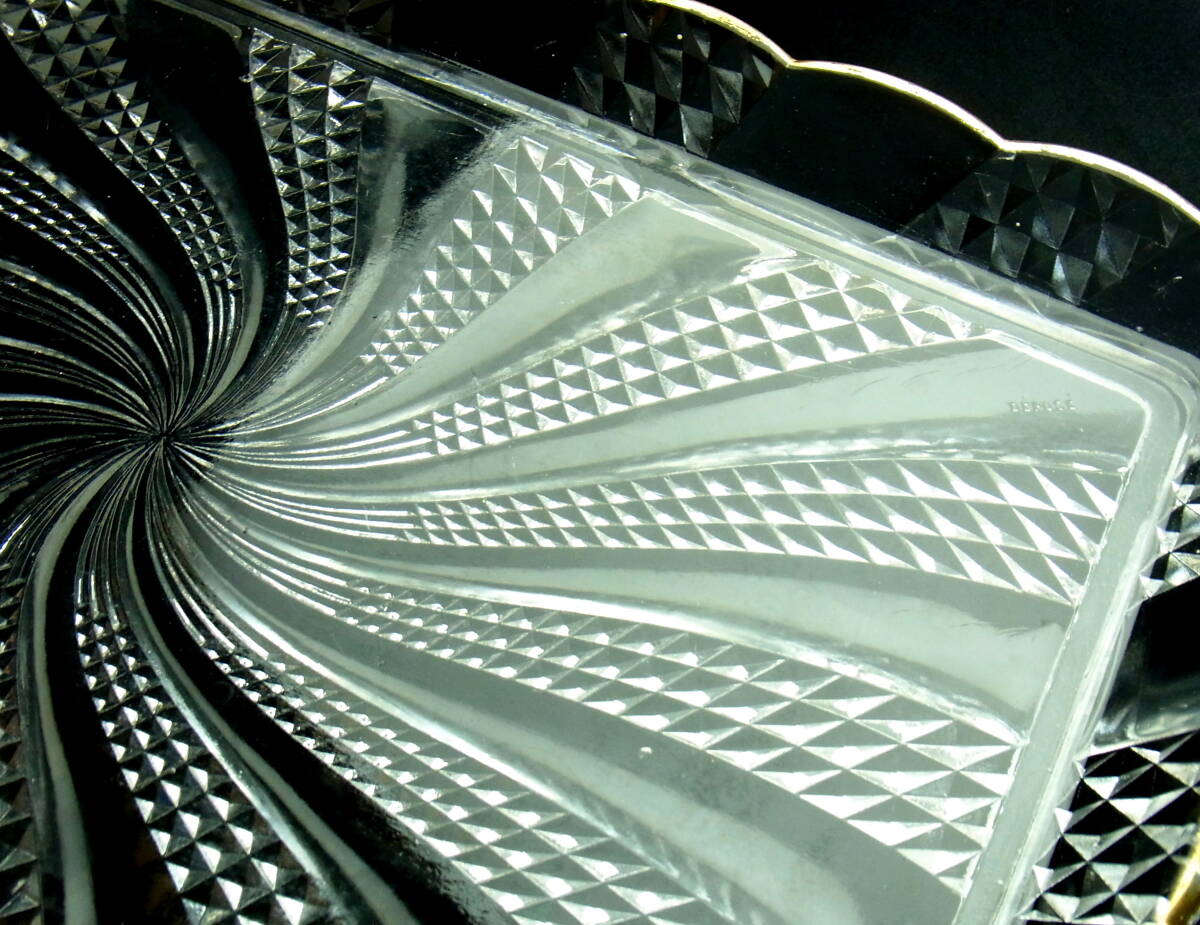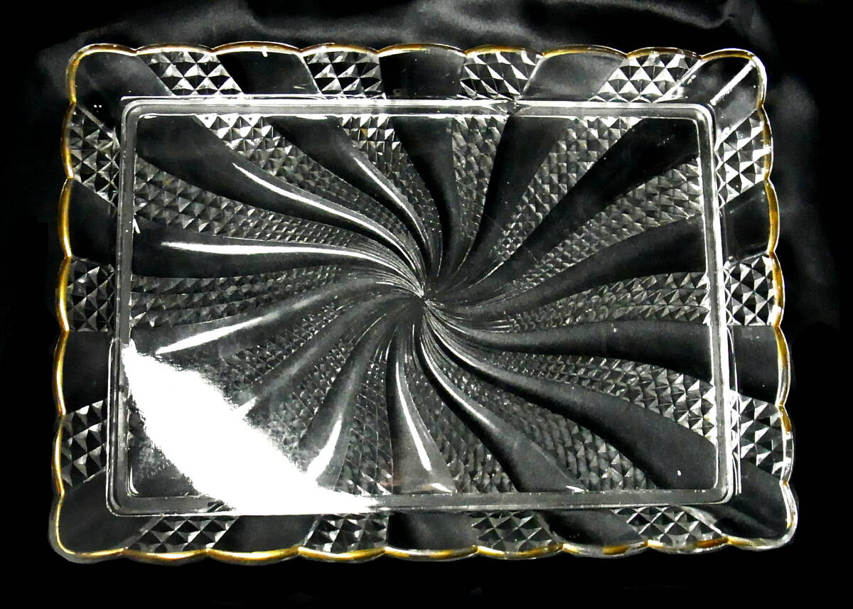 稀少 OLD BACCARAT オールドバカラ SERPENTINE 重厚なトレイ 大皿 金彩装飾 上質クリスタル フランスアンティーク 大きなスクエアプレート
