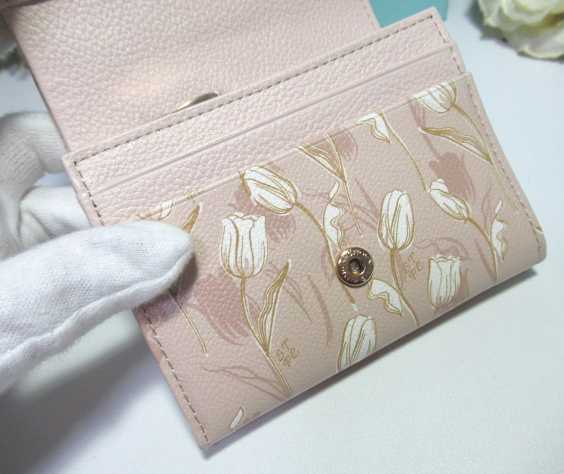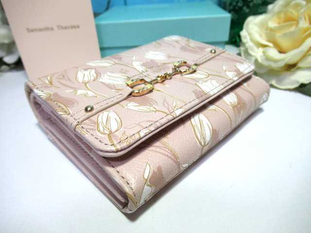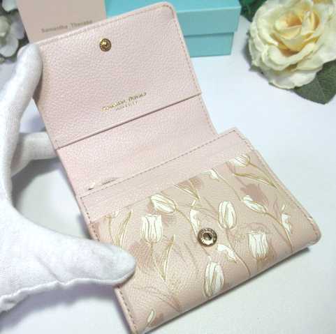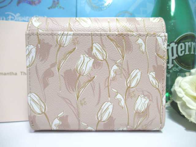 送料無料 13%引 サマンサタバサ 美人百花 限定 牛革 チューリップ 柄 二つ折り財布 折財布 ミニ財布 ベージュ 新品 証明書付 開運 金運