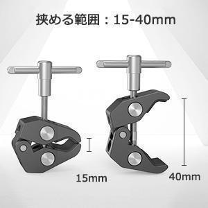 はさめる範囲:15-40mm。40mmまで挟めることができる強力スーパークランプは本体の重量が200gだけですから、収納しやすいです。