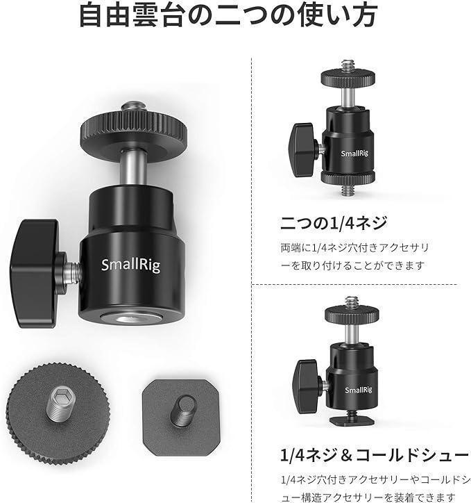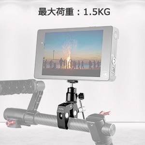 自由雲台は360°調整することが可能で、中央の大きなノブを緩めることで、モニターの位置を調整することができます。ノブを締めることで、モニターやほかのアクセサリーを最適な位置に固定することができます。最大荷重:1.5kg
