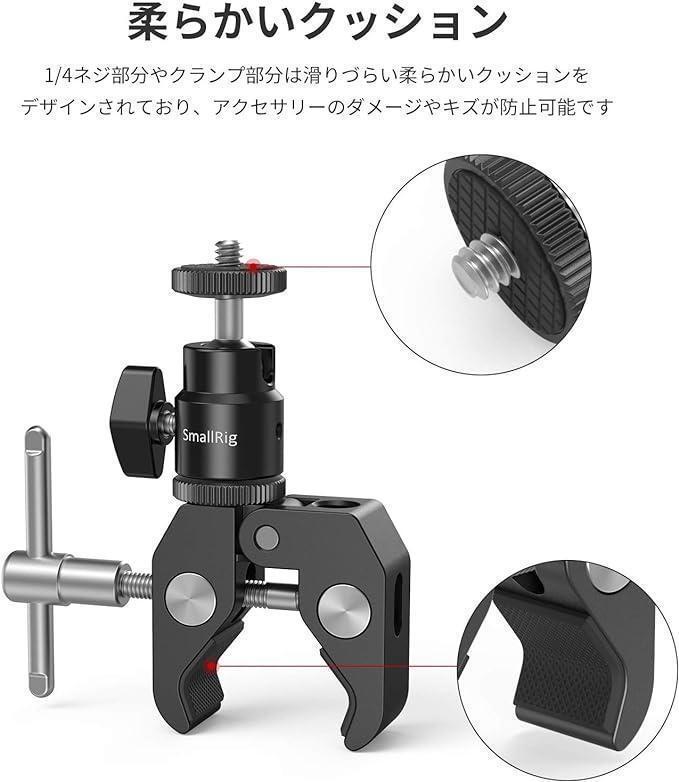 中央のノブを締め付けるだけで、全ての間接部が同時に固定されます。そして、ゴムクッションを採用し、カメラリグの脱落や破損を防ぎます。1/4ネジ穴を利用して、1/4ネジ付きのアクセサリーが装着できます。