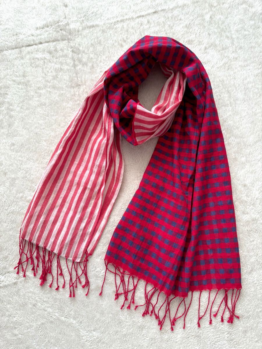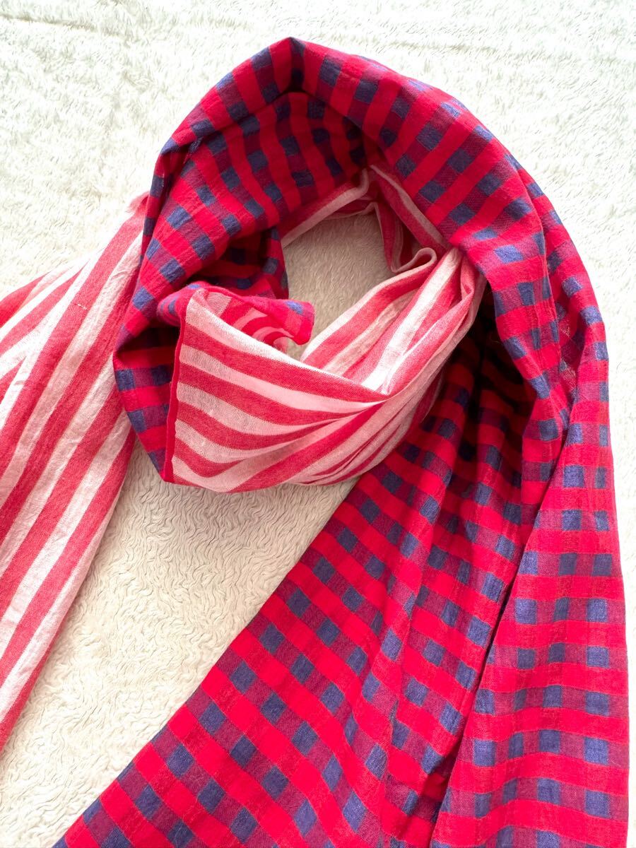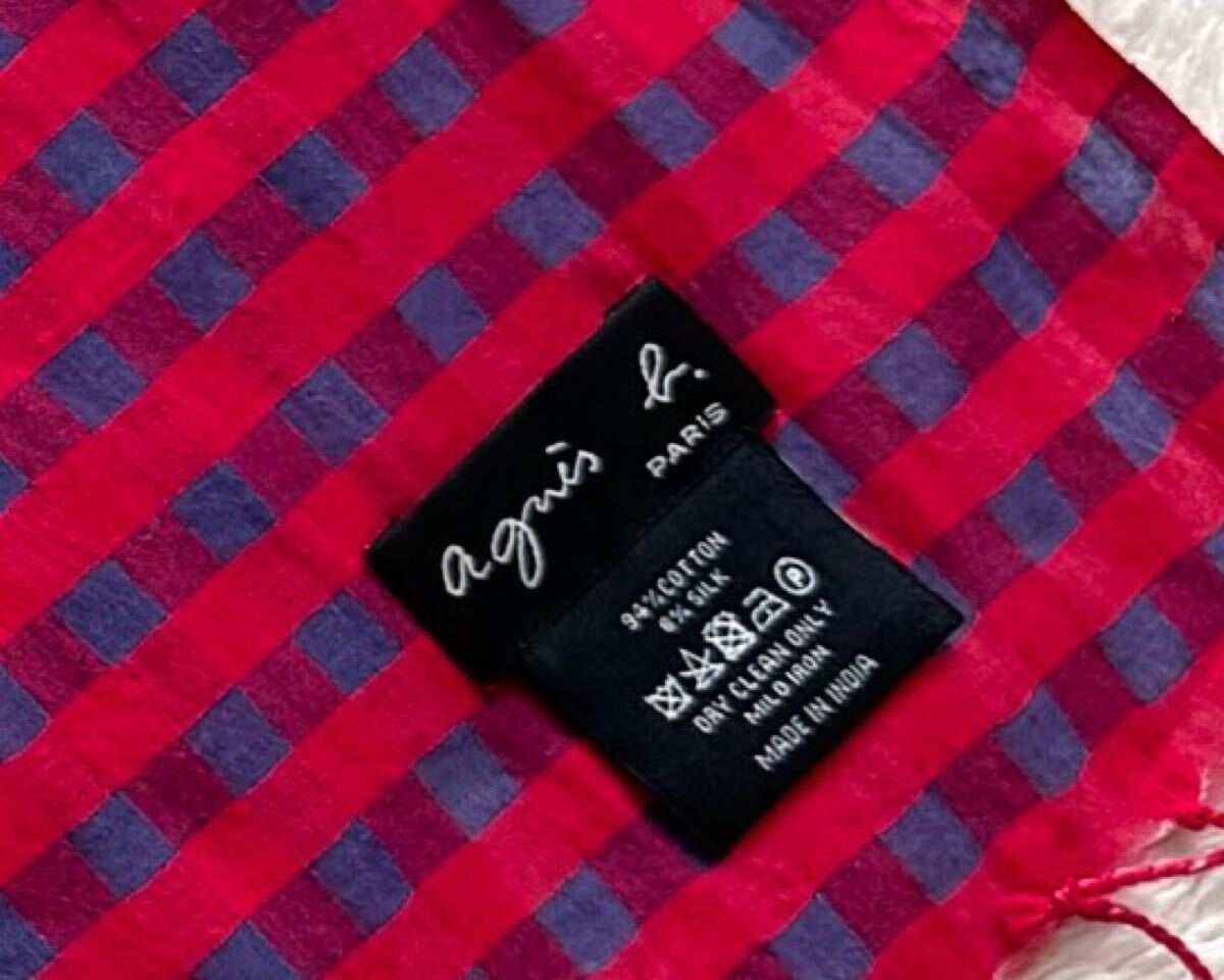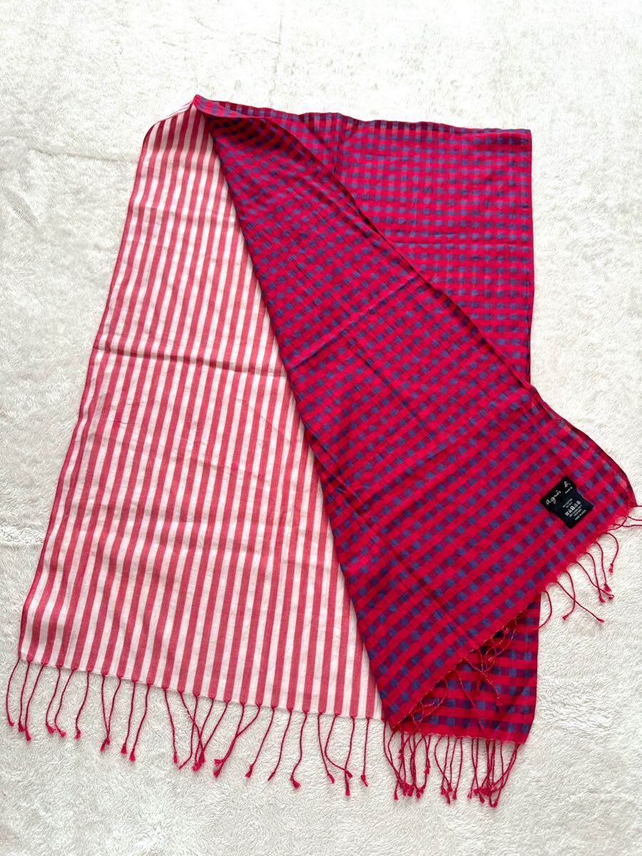 agnis b paris 大判切り替えストール スカーフ チェック ストライプ シルク混 コットン アニエスベー