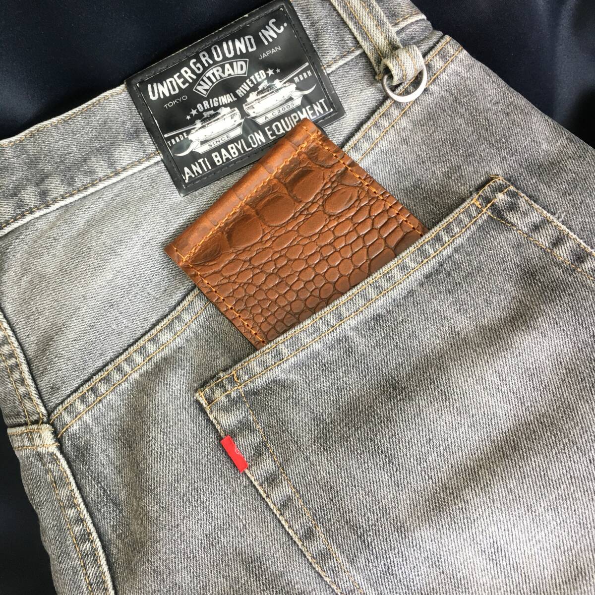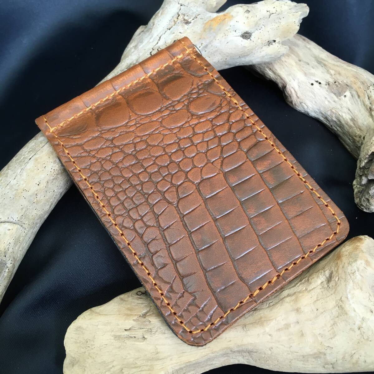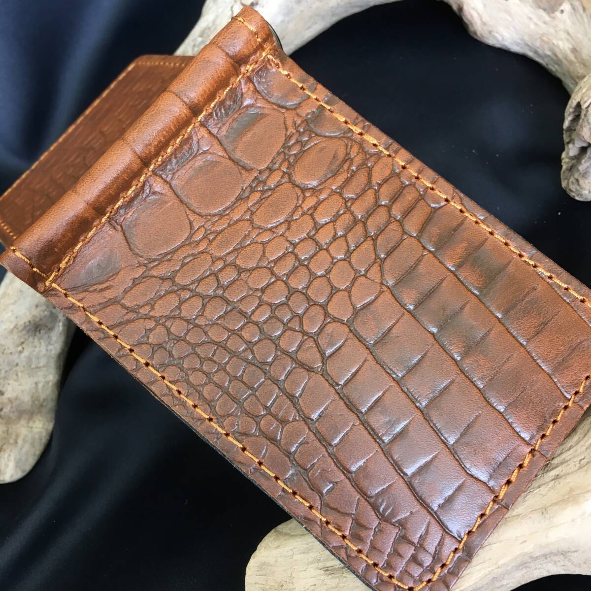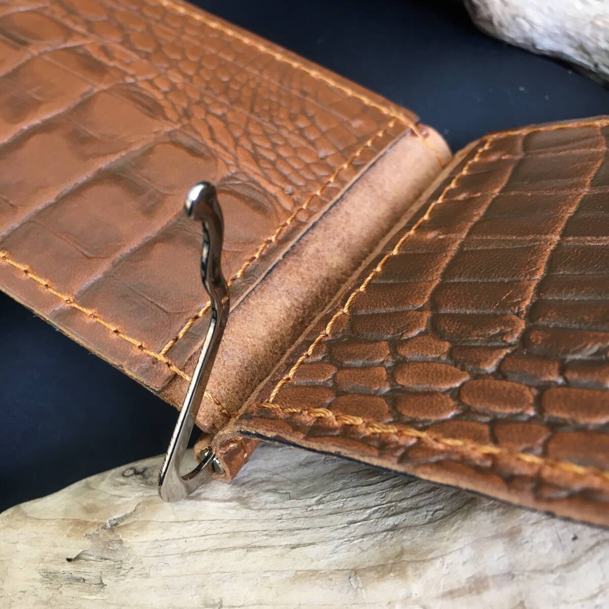 ワニ型押し牛革制のマネークリップになります。簡易的なマネークリップになります、仕事やアウトドアなどでご使用ください。