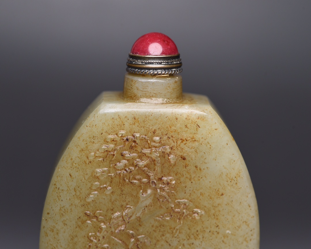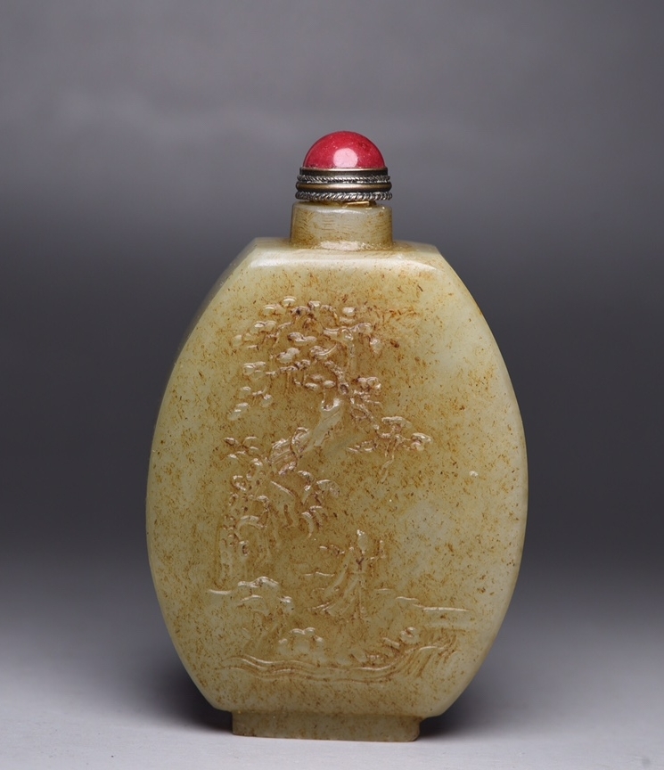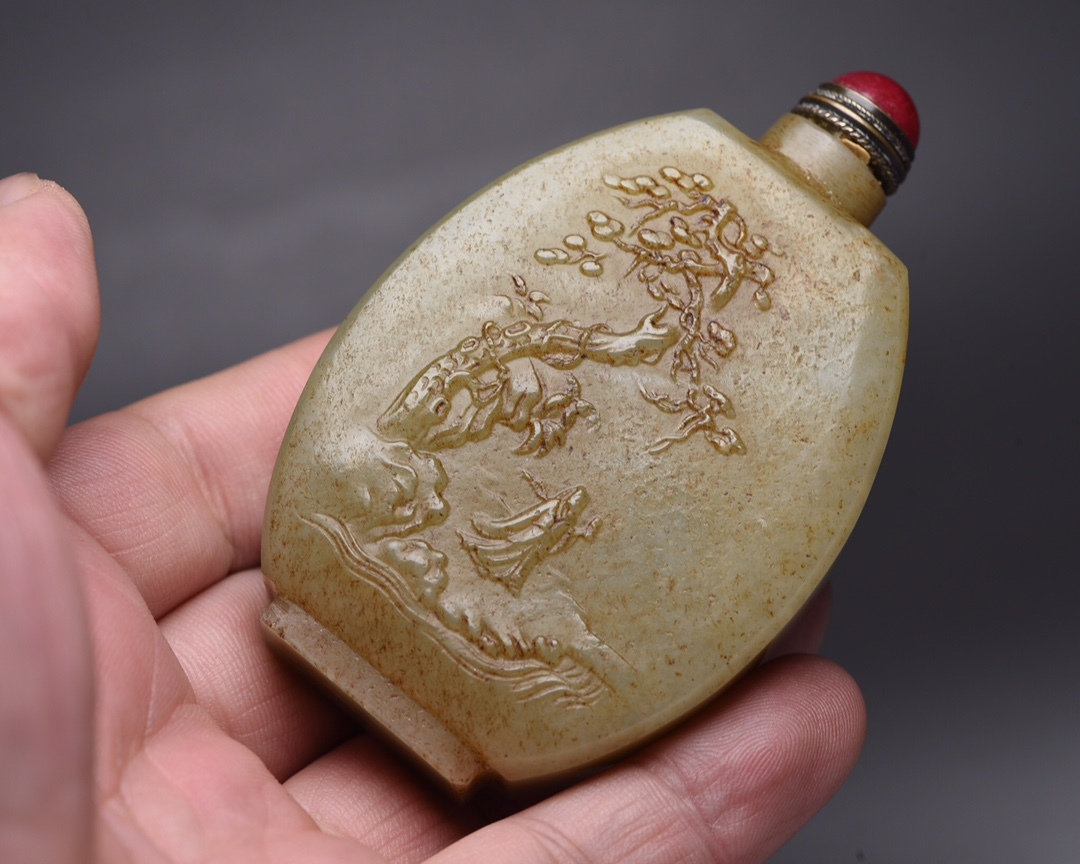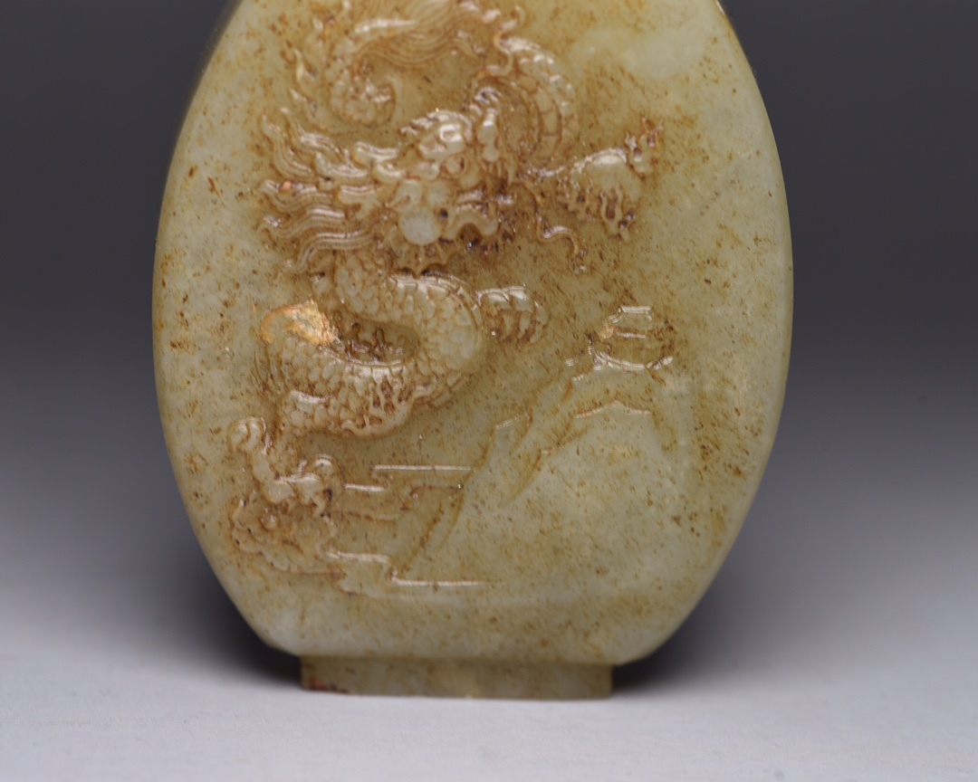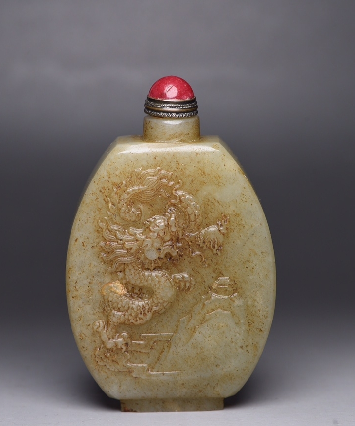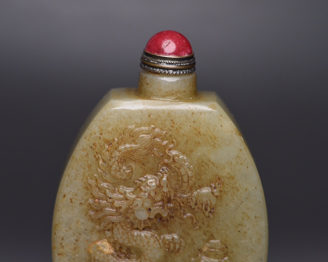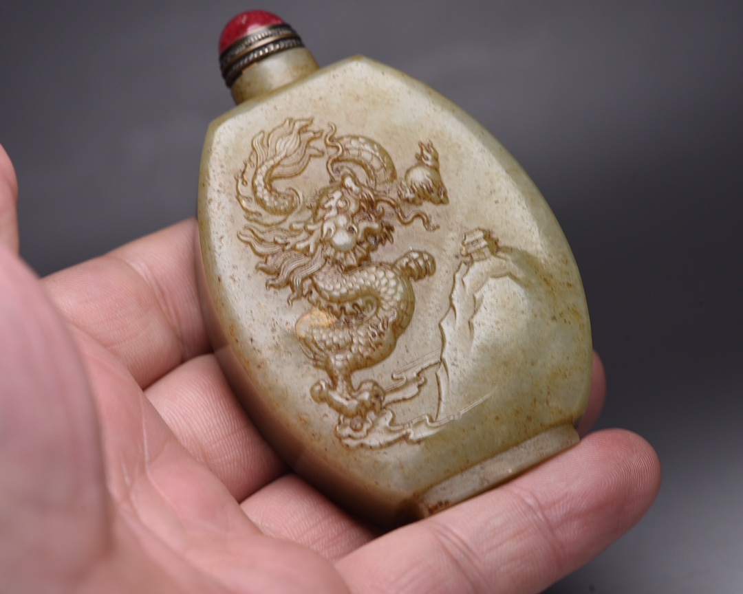 旧蔵 清 玉彫 和田玉 鼻烟壺 飛龍在天 玉質温潤細膩 沁色自然 刀功老道 包漿一流 極細工 中国古玩 古美術 古董品 202-17