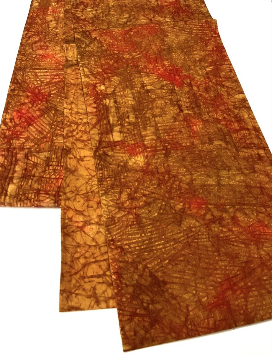 花とら●リサイクル帯 袋帯2本 名古屋帯1本 3本まとめて 金地 クリーム 美品 黒地オレンジ 縞 個性的 茶  250121