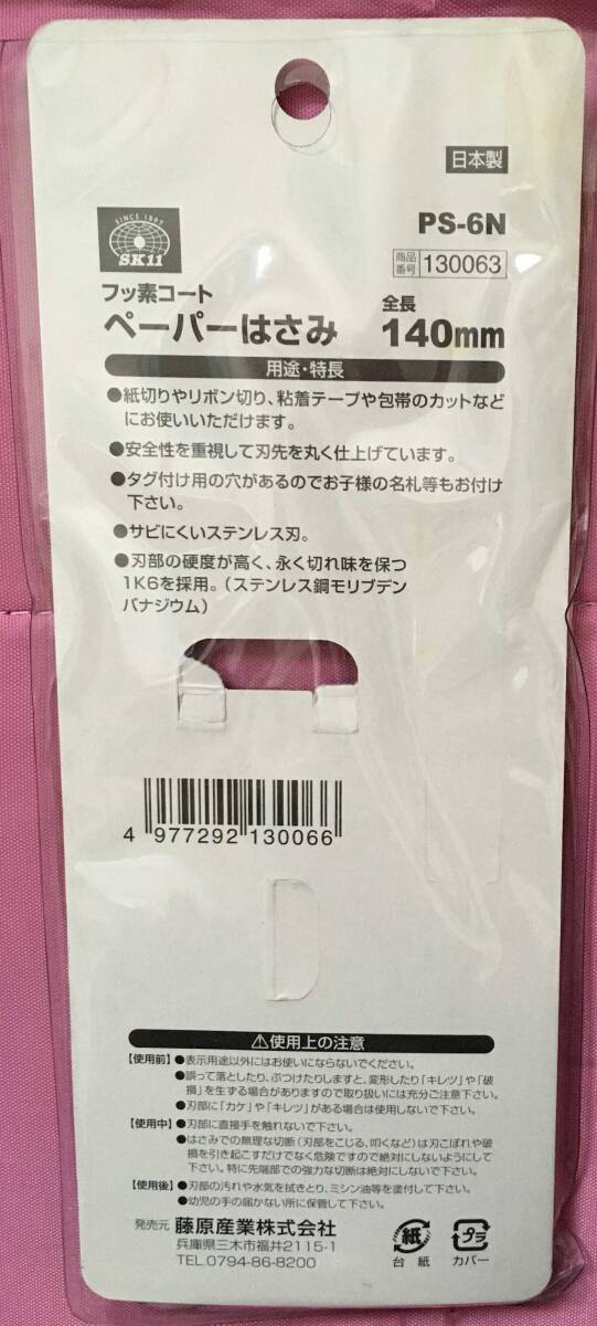 ■画像通りの、藤原産業 ペーパーはさみ フッ素コート 140mm PS-6Nです。
