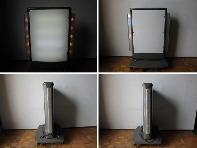 【商品仕様】 ・メーカー:不明 ・看板 ・管:Y1188 ・全体サイズ:W1080×D800×H1480mm ・看板部分:横790×縦1090mm ・照明電源:100V ・電球の個数:10個(写真には写りませんが交互に点滅します) ・キャスター4足付き 【商品状態】 ・商品はUSED品です。 ・サイズは素人採寸の為、多少の誤差はご了承ください。 ・清掃済みです。落としきれない汚れございます。 ・照明点灯動作確認済みです。 ・USED品の為、傷・汚れ・割れ・擦れがございます。 ・白いカバーを留めるネジが7個欠品しております。 ・写真の物が全てです。 ・写真でご判断頂きますようお願いします。 【お支払方法】 ・銀行振込の場合は、Paypay銀行・大垣共立銀行の取り扱いとなります。 振込み手数料はお客様のご負担でお願い致します。 ・ヤフーショッピング各種支払方法に対応しております。 ・お支払い金額確定後、3日以内に商品代金+消費税+送料を御入金を下さい。 御入金確認後の発送となります。 【発送詳細】 ・代引きは不可となっております。 ・日本通運での発送となります。 ・北海道・沖縄・各中継営業所が入る場合は、別途御見積となります。 ・大型商品のため、リフト、又は荷受人様数名が必要となります。 ご用意頂けない場合、又は個人の方への発送は営業所止めとなります。 地域によっては営業所止めのみの配達となる場合がございます。 ・法人の方は、必ず法人名をご連絡ください。 ・配送ドライバーさんは商品荷降ろしや 設置場所への搬入等はお手伝いできません。軒先降ろしとなります。 ・配達時間のご指定はできません。 ・元払い発送になります。