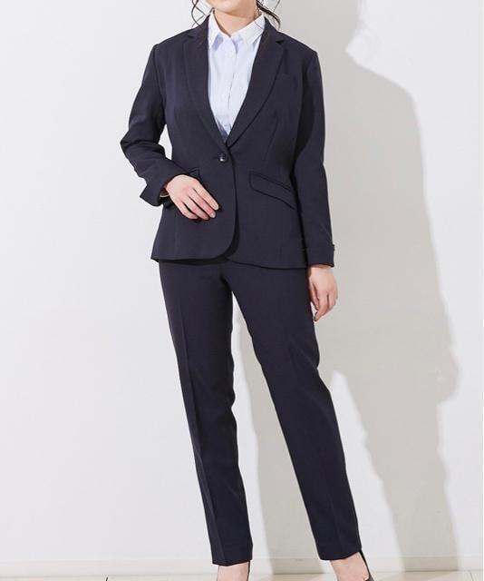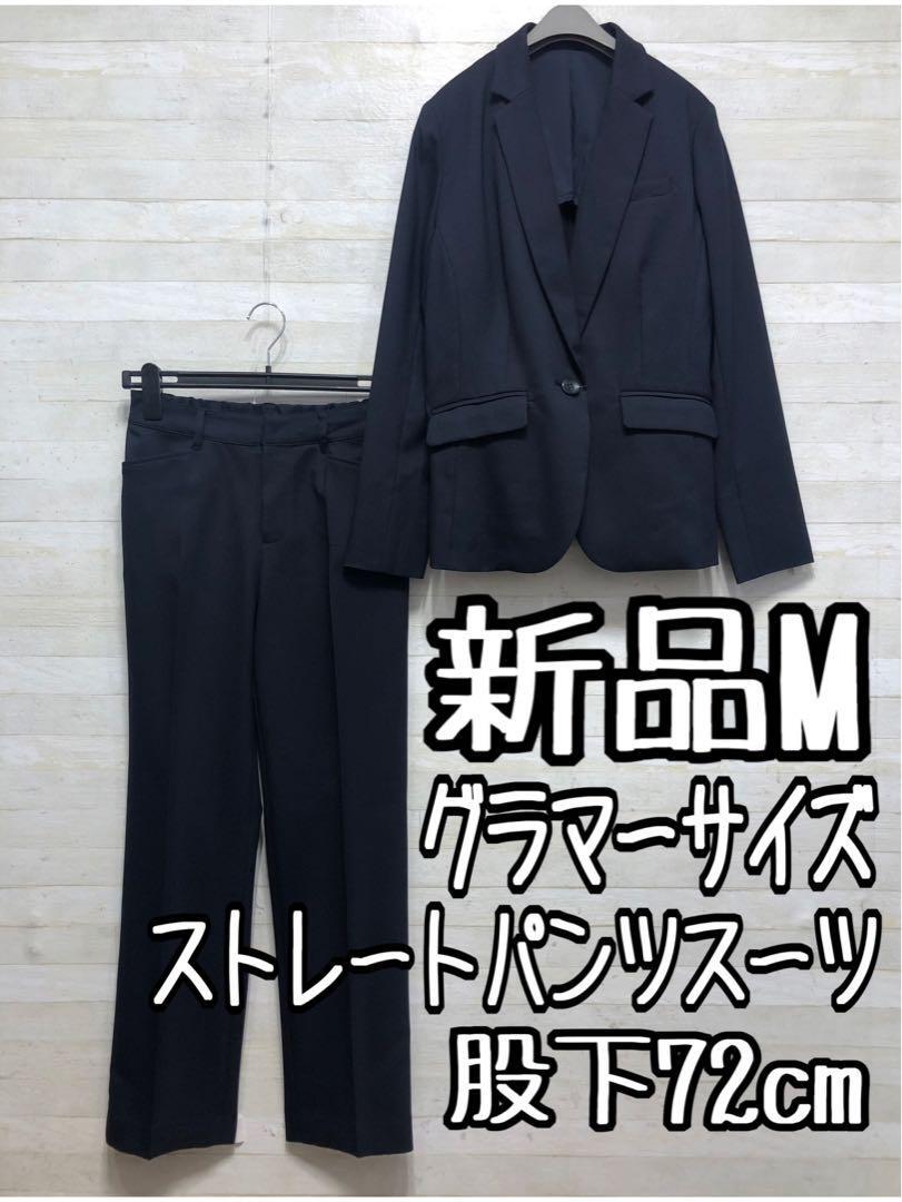 新品☆Mグラマーサイズ紺系♪ストレート洗えるパンツスーツ♪◯G303