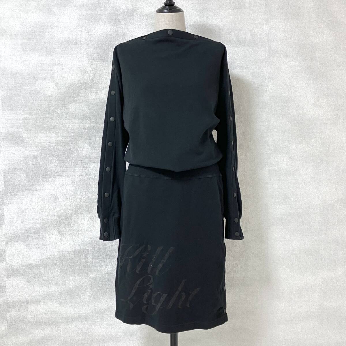 HYSTERIC GLAMOUR スナップボタン ラメ プリント スウェット ワンピース ブラック