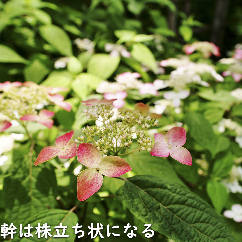 アジサイは日本の梅雨をイメージさせる有名な花木です。落葉低木で観賞用として多く植樹されています。幹は群生して枝分かれして高さ3.0mほどになります。葉は厚く表には光沢があります。5~7月に花が咲きます。ガクアジサイ、ヤマアジサイ、コアジサイ等、多種多様な園芸品種があります。花木として庭木にしたり、根締めとして使われたりします。