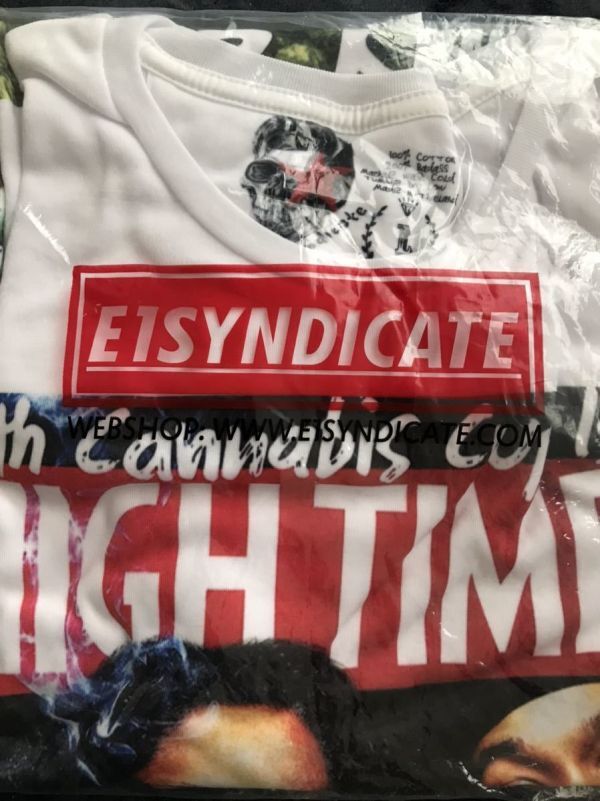 E1SYNDICATE イーワンシンジケートTシャツ SNOOP DOGG WIZ KHALIFA WEED GANJA SATIVA ホワイト M  既に国内外で在庫薄!