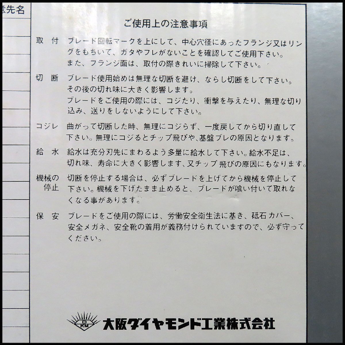 ![]() メーカー:大阪ダイヤモンド工業株式会社 外径:Φ524mm ※当方実測値 刃厚:約4mm 中心穴径:Φ27mm 重量:約5Kg 多少、汚れ・傷などありますことをご了承下さい。 ☆ご不明な点がございましたら、お気軽にお問い合わせ下さい。 ●発送方法について ゆうパック140サイズ予定(元払) ○送料について 地域別料金表(140サイズ) ◆落札価格に対して消費税をお預かりいたしますのでご了承ください◆ また、店舗への直接のお引取りも歓迎いたします。 |
