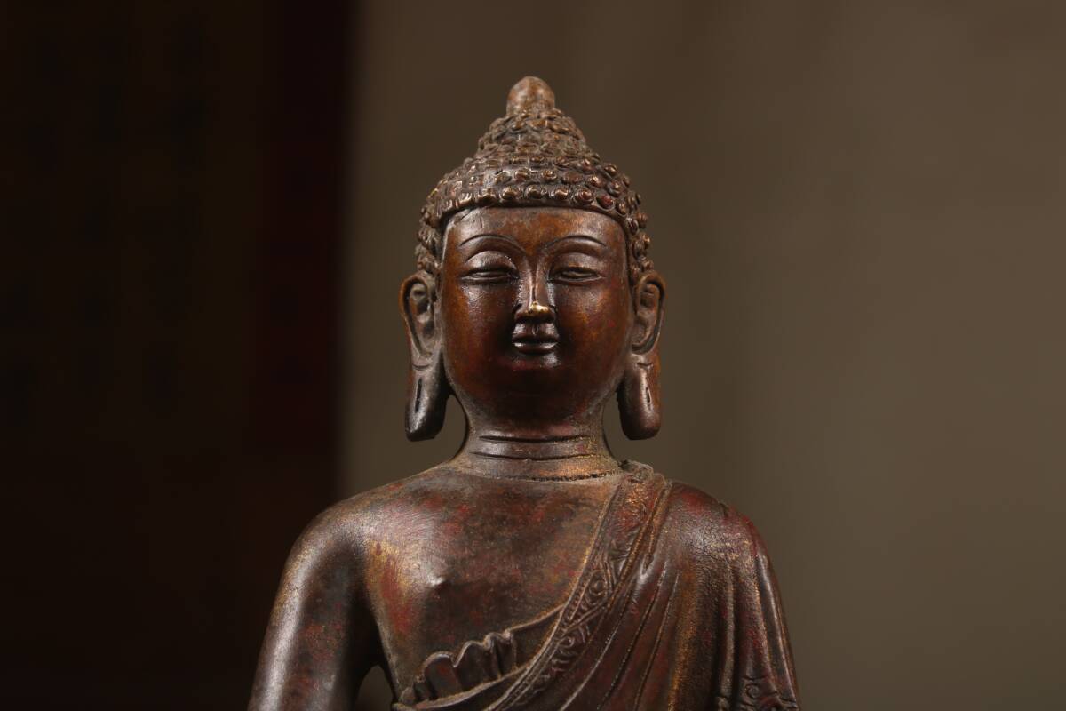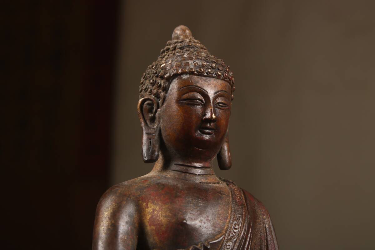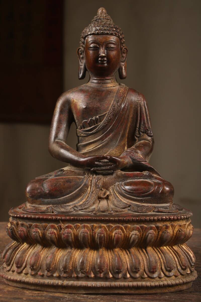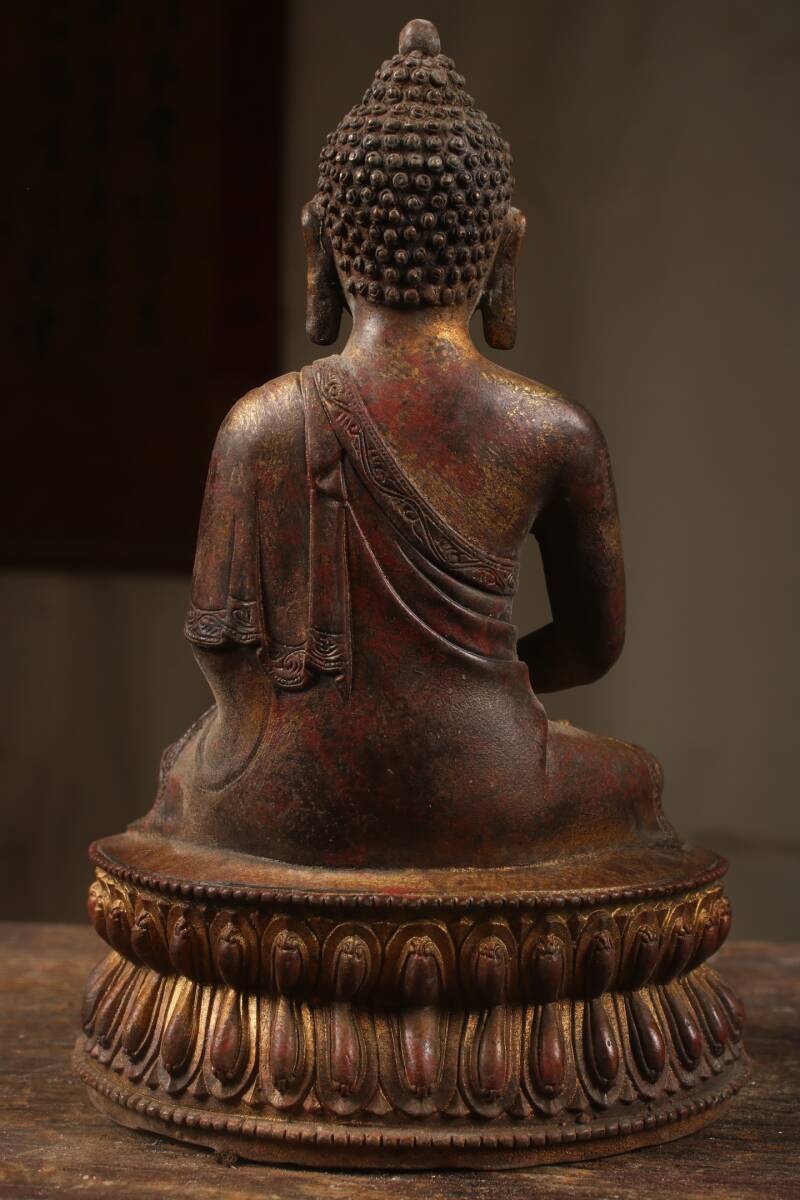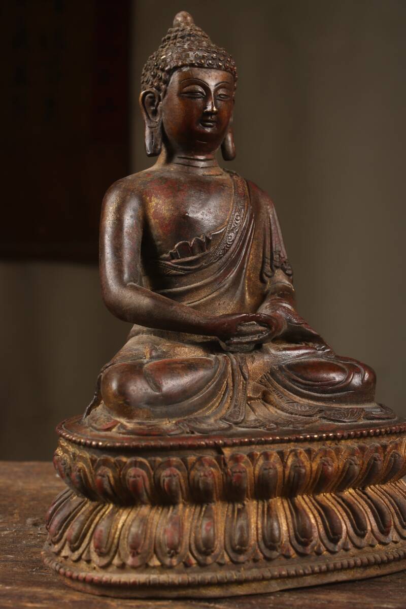 『清・仏教古美術・古紫銅塗金彫・大日如來像・文案置物・密宗密教・供養品』極細工・時代物・東洋彫刻・古賞物・中国古玩・中国古美術
