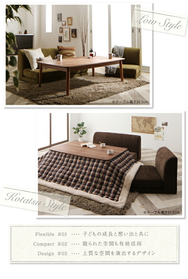 ずっと使えて快適。こたつもソファも高さ調節できるソファダイニングセット Famoria ファモリア 4点セット(テーブル+1Pソファ2脚+ベンチ1脚) W135【ソファカラー:ベージュ】です。