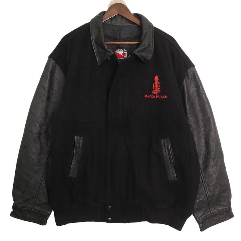 CANADA SPORTSWEAR メルトンウールスタジャン スタジャン 古着 メンズUS-2XLサイズ ブラック系 jc-0244