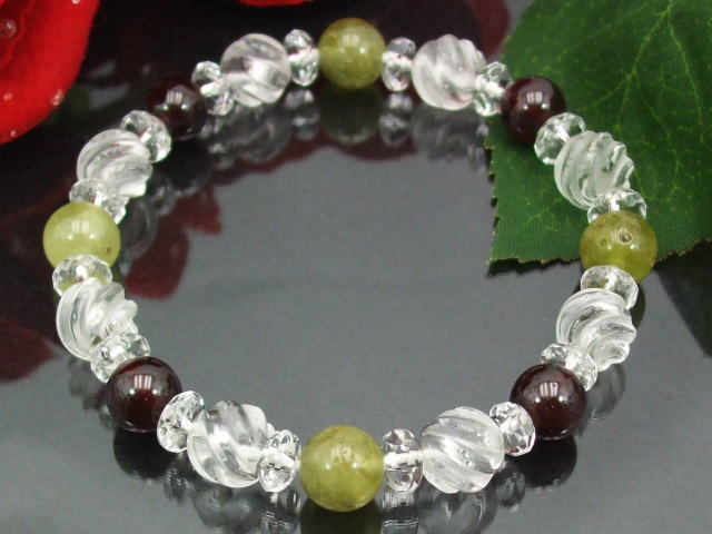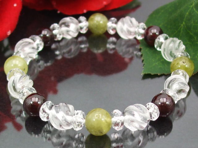 ロロロ 素材 ロロロ ガーネット7.5ミリ グリーンガーネット8ミリ ツイスト水晶8ミリ カット水晶 サイズは約17.5cm(内径約16cm) サイズ変更は無料です♪
