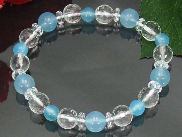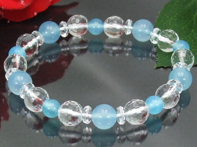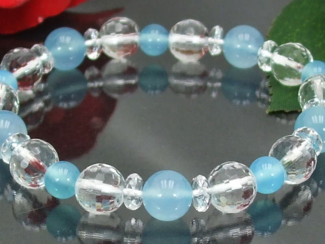 ロロロ 素材 ロロロ シーブルーカルセドニー6ミリ8ミリ 水晶128面カット8ミリ カット水晶 サイズは約17.5cm(内径約16cm) サイズ変更は無料です♪