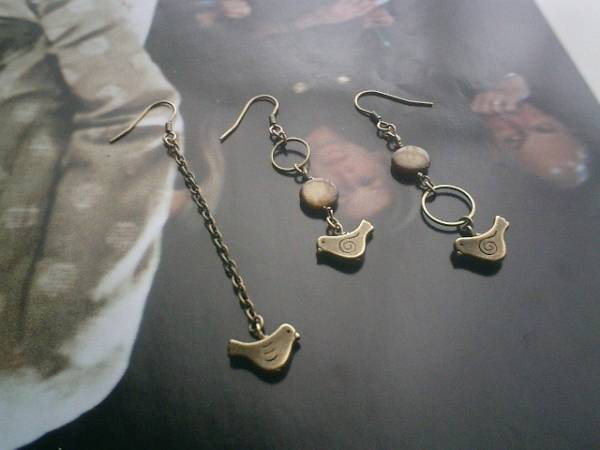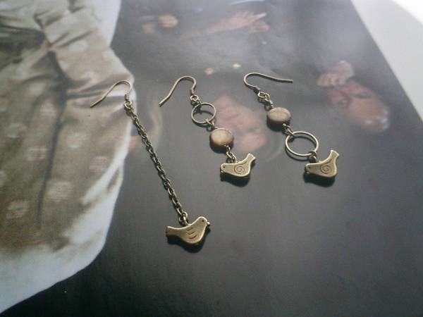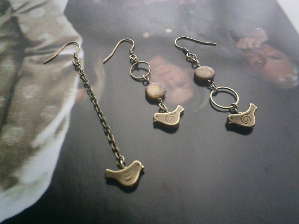 ニューヨーク・デッサンシリーズです♪キュートな小鳥さんと異素材のピアス3本セットです♪♪ペアが1組とデザイン違いが1本で合わせて3本セットです♪色々な組み合わせで楽しんでいただけます♪シックなお色でまとめて大人のロマンチックしています♪10ミリのコインのブラウンシェルに小鳥さんのメタルチャームやデザインリングを合わせて可憐な表情です♪長さはペアが6・5センチ、デザイン違いが9センチ位です♪イヤリングにも変更出来ます♪お揃いのネックレスやブレスレットも出品しています♪シンプルで飽きのこないいつまでも着けられるデザインを考えて作りました!ハンドメイドをご理解頂いてノークレーム、ノーリターンでお願いします