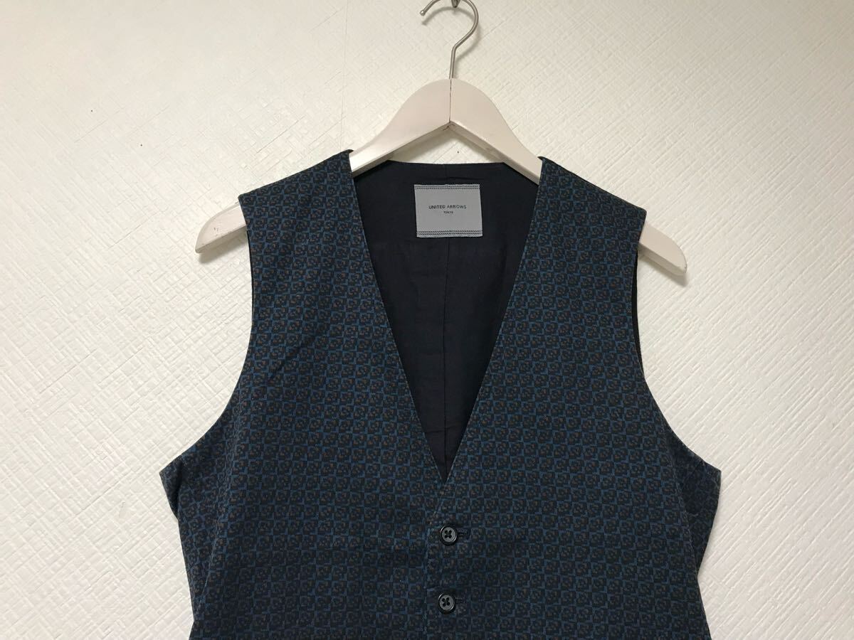 【商品名】本物ユナイテッドアローズUNITEDARROWSコットン柄ベストジレメンズサーフアメカジミリタリーストリートスケーターワークビジネススーツモードゴルフドレスM紺ネイビー