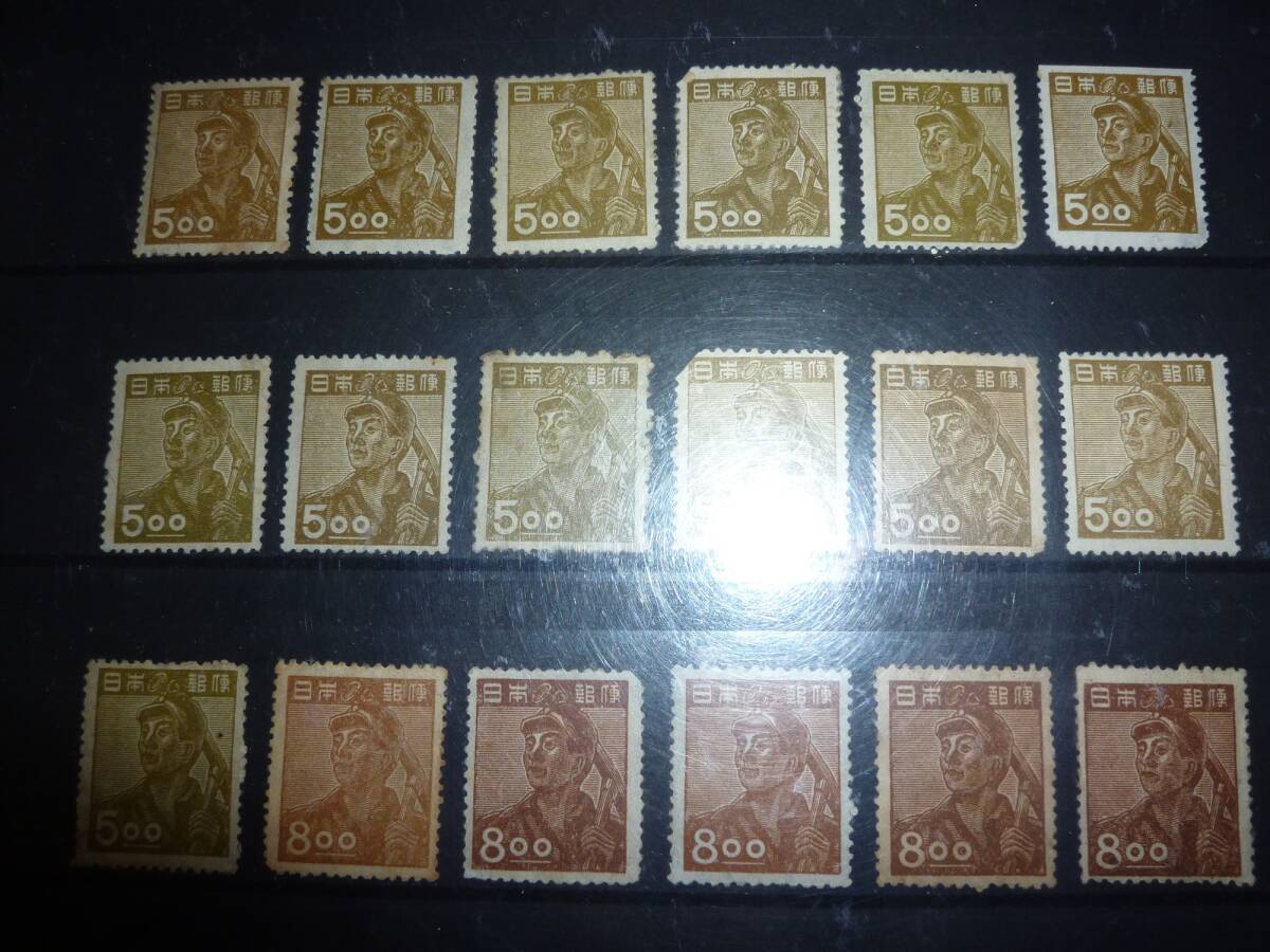 未使用 産業図案 5円 炭坑夫 他 38枚