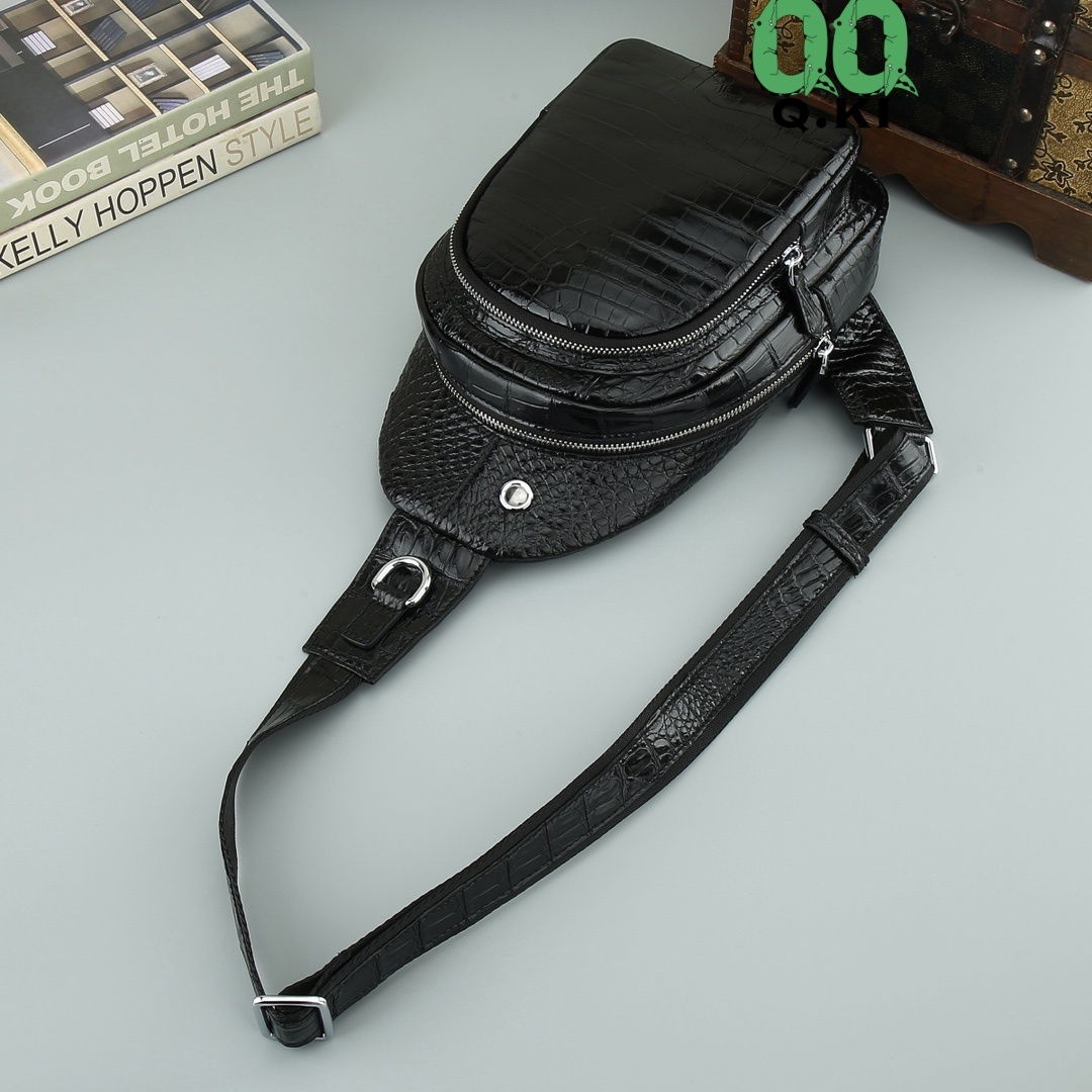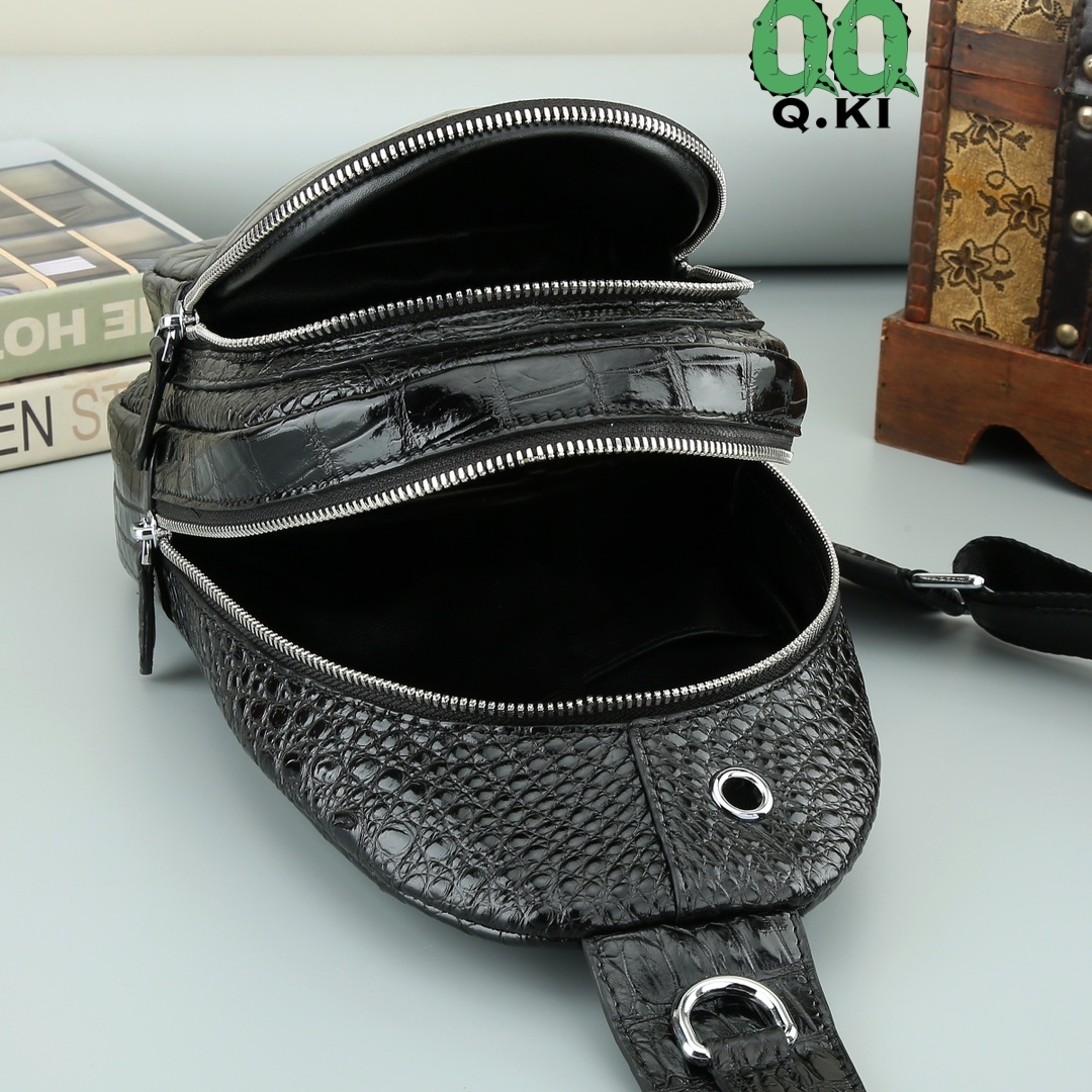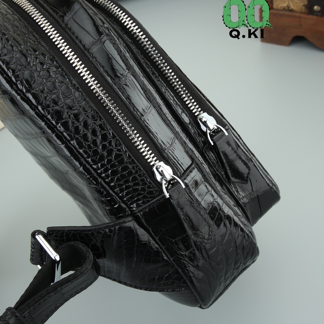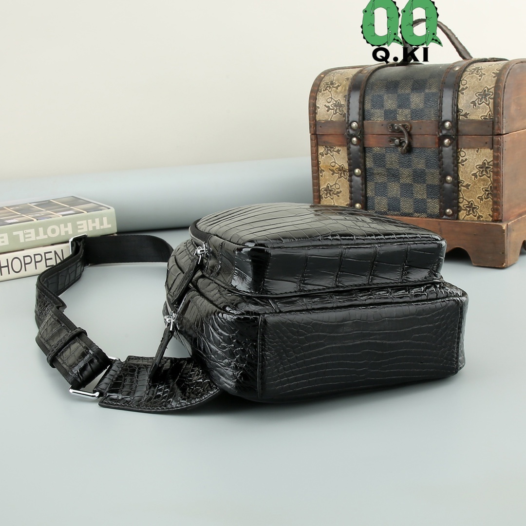 クロコダイル 本物 マンズバッグ ワニ革 ボディバッグ 総本革 腹革センター取り 肩掛け ダブルファスナー ギフト 黒