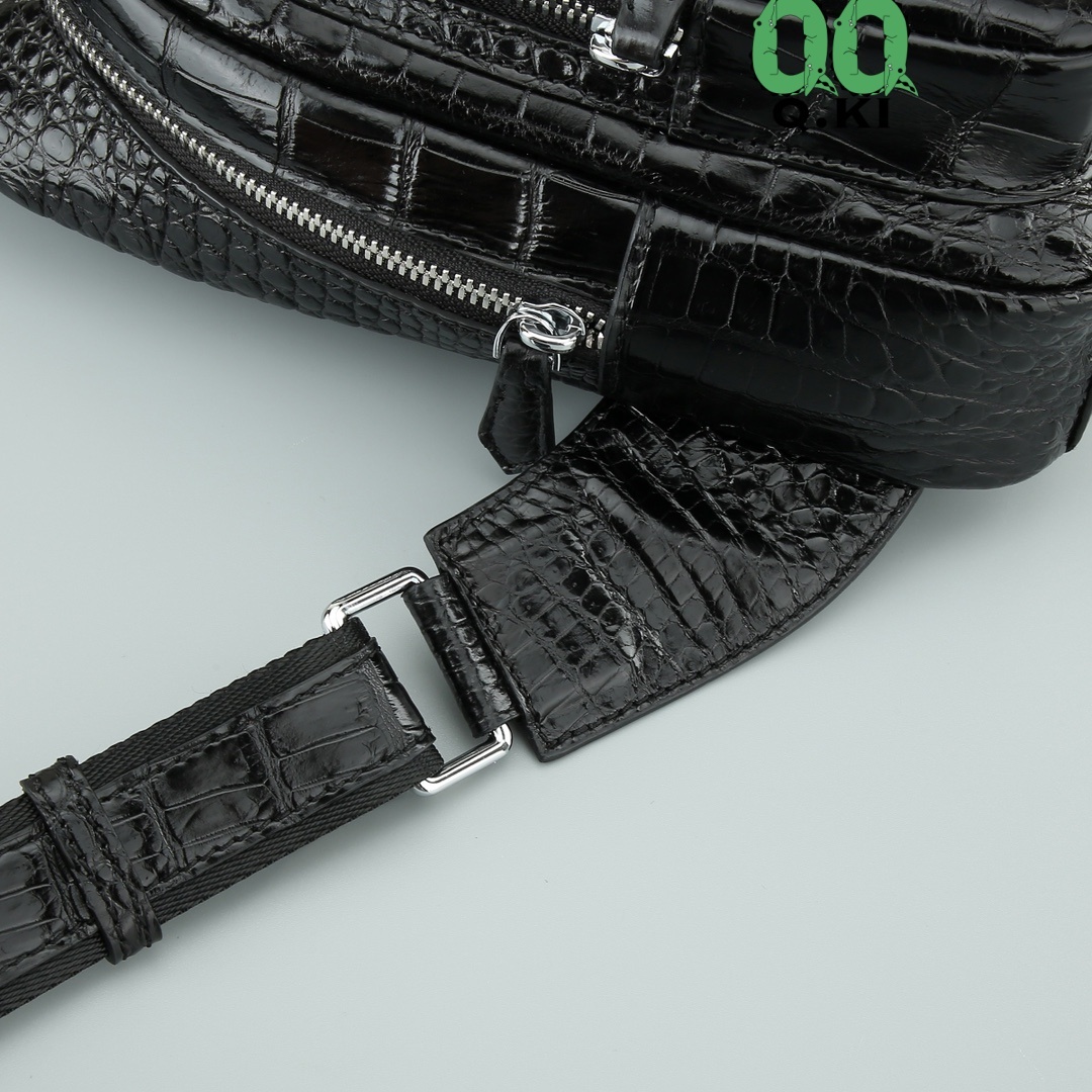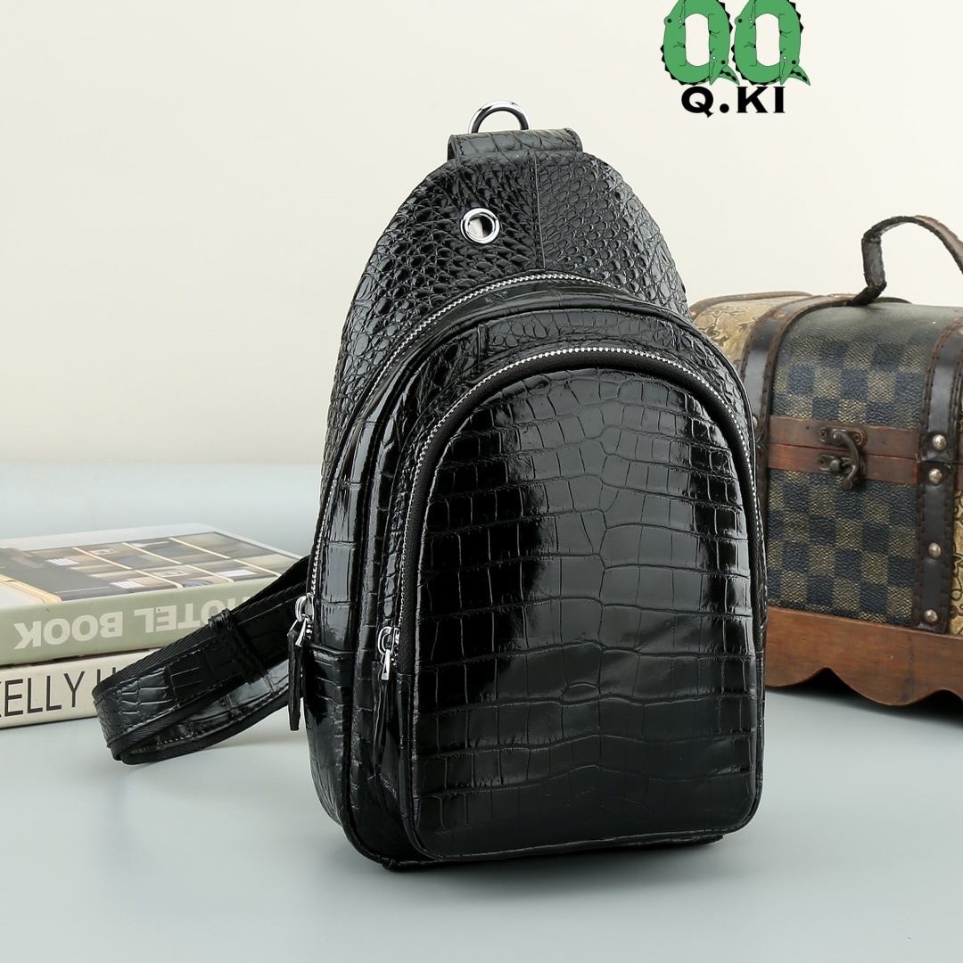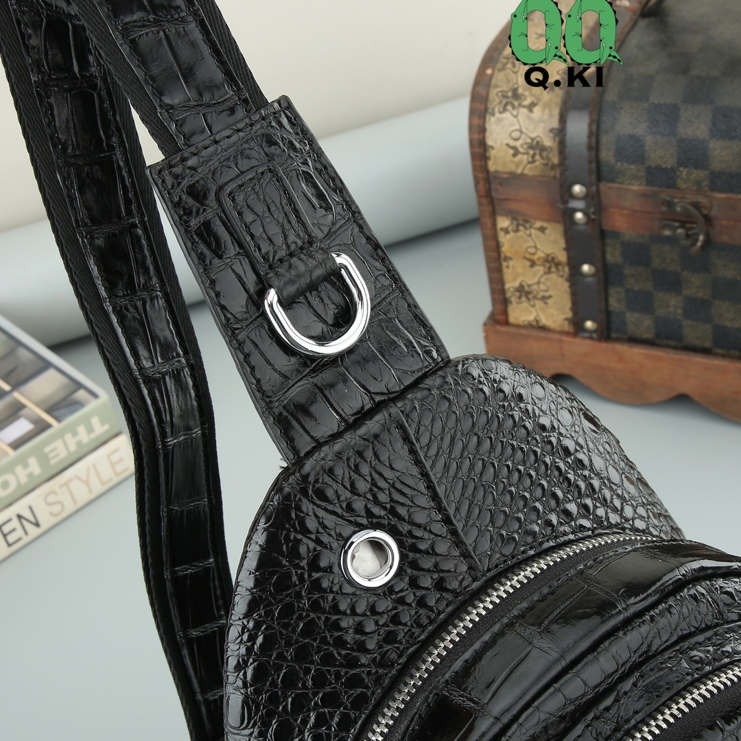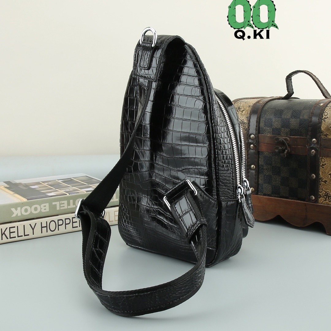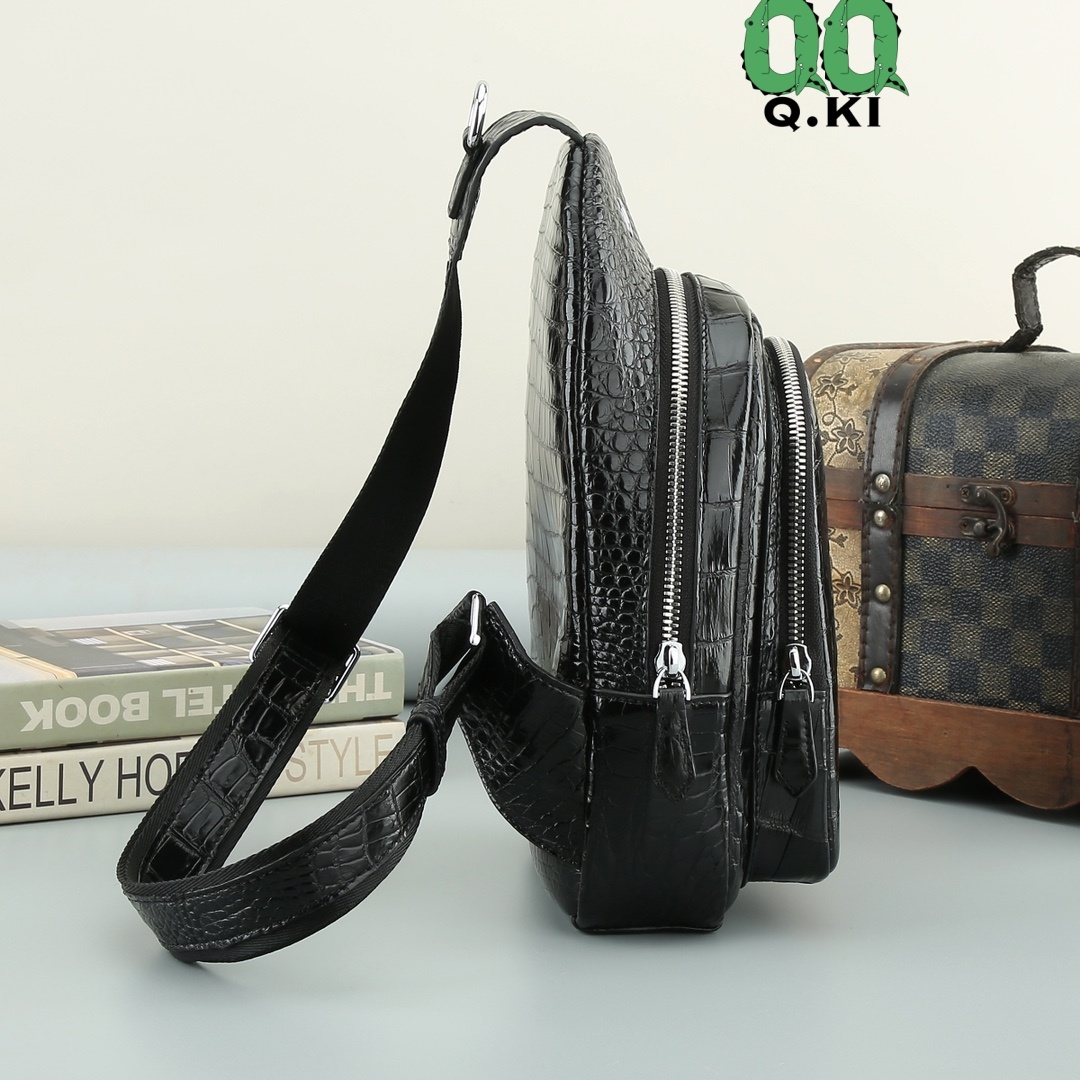 クロコダイル 本物 マンズバッグ ワニ革 ボディバッグ 総本革 腹革センター取り 肩掛け ダブルファスナー ギフト 黒