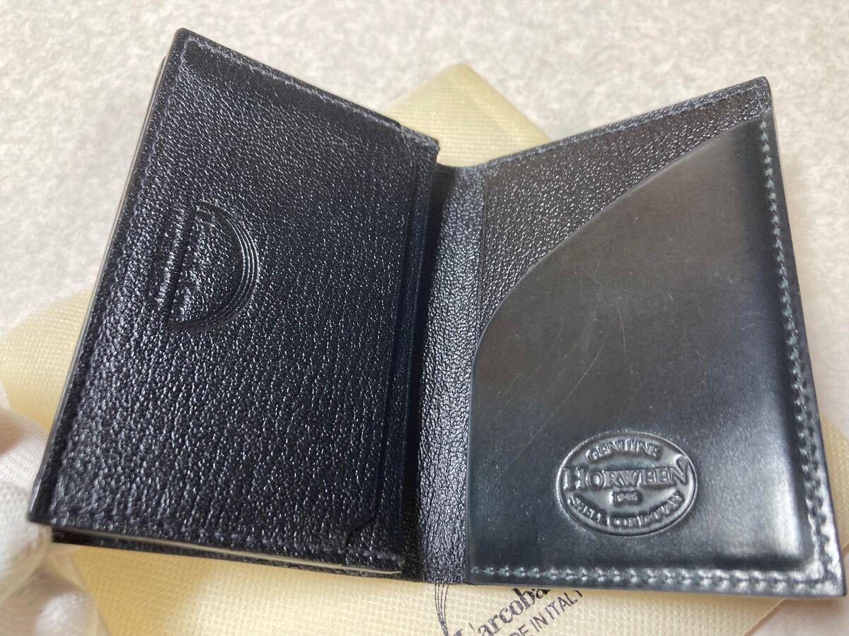 新品 ラルコバレーノ(伊) カードケース/名刺入れ 限定品ホーウィン社シェルコードバン【黒x黒】純正箱付 定価5.1万円