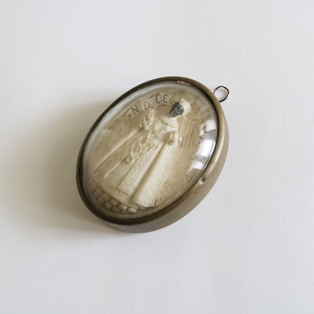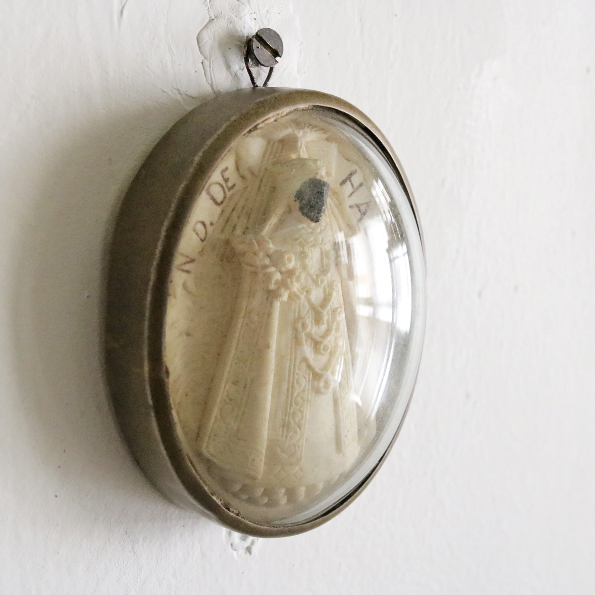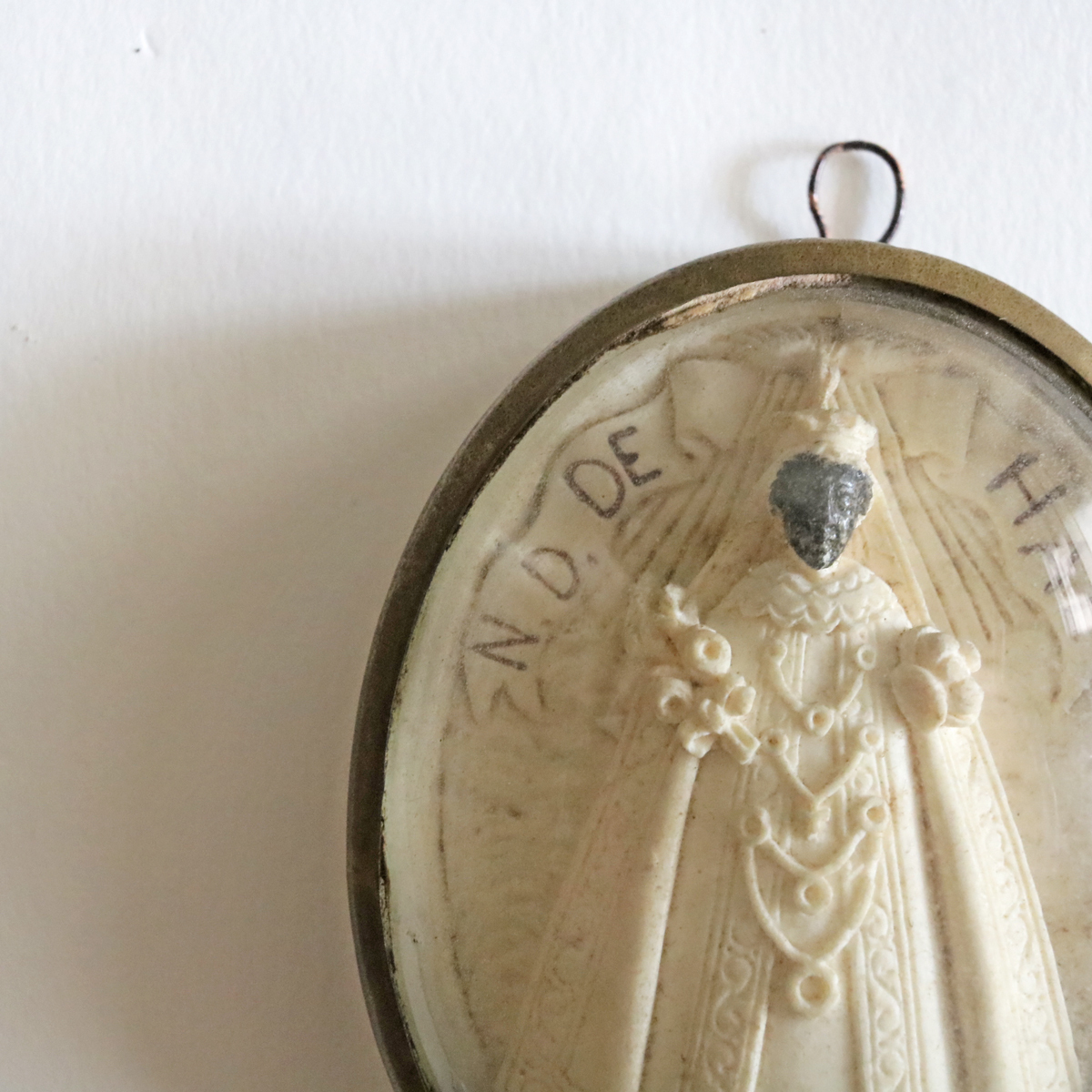 19世紀 1800年代 ガラスドーム 聖母マリア 黒マリア 黒いマリア 教会 キリスト マリア フランスアンティーク 聖品 装飾 クロス 十字架 メダイ