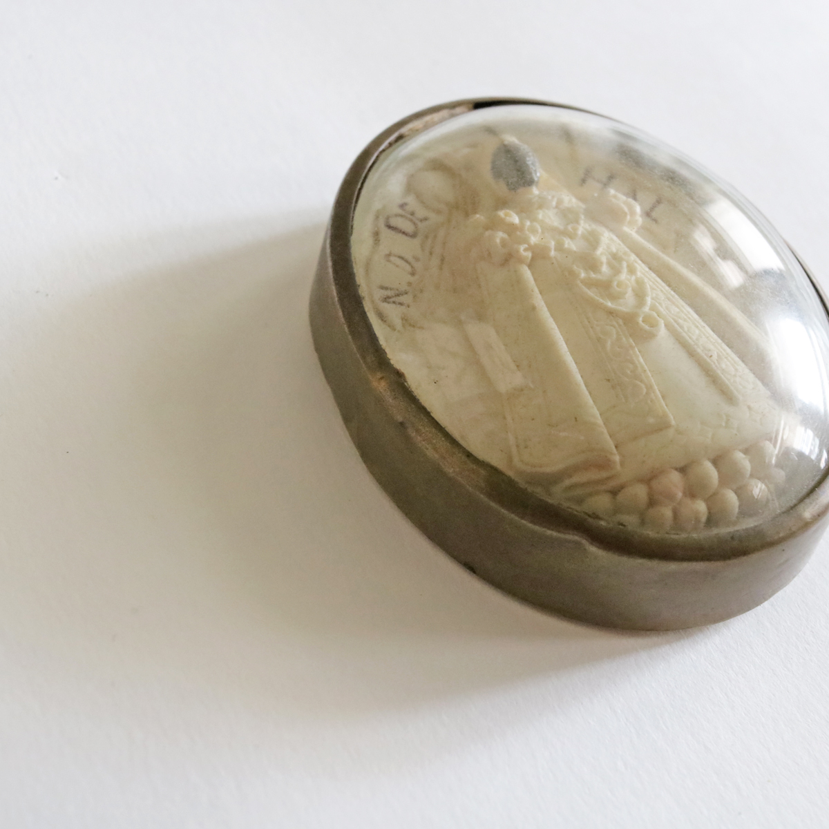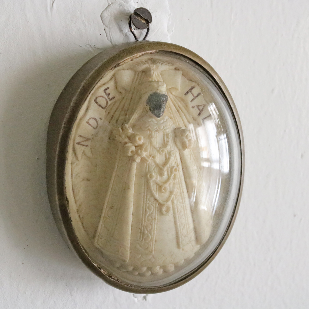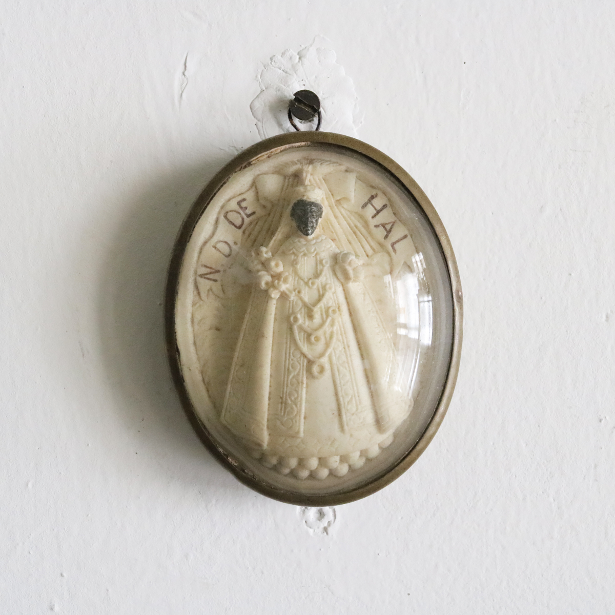 19世紀 1800年代 ガラスドーム 聖母マリア 黒マリア 黒いマリア 教会 キリスト マリア フランスアンティーク 聖品 装飾 クロス 十字架 メダイ