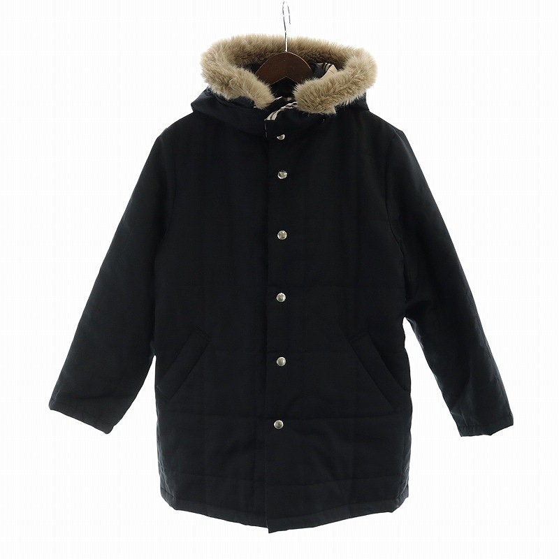 バーバリー ロンドン BURBERRY LONDON 中綿ジャケット 長袖 ロング ノバチェック フード 総裏地 140A 黒 ブラック ■GY18 /MQ キッズ