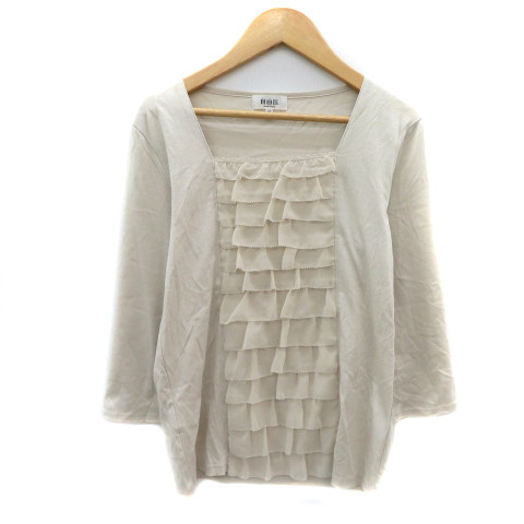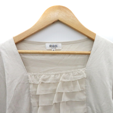 自由区 オンワード樫山 カットソー 七分袖 スクエアネック フリル 40 L ベージュ /YK44 レディース