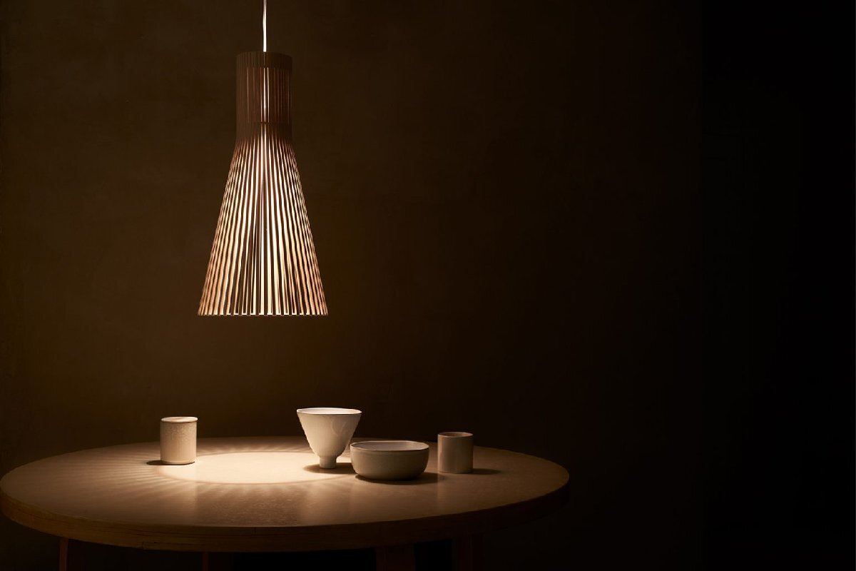 最高品質のフィンランドバーチ材で構成した透明感と建築的な構造の美しい、和洋折衷のミニマリズムなデザイン思想に貫かれた大ヒットセラーペンダントライト。Secto Designより。