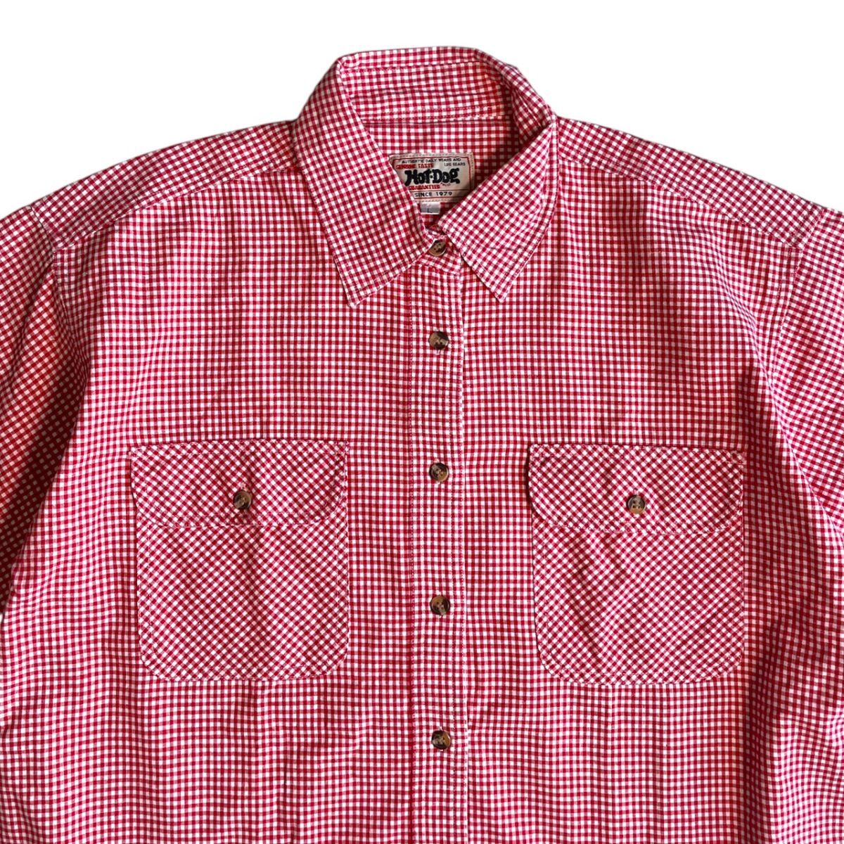 超希少★Hot-Dog PRESS ホットドッグ プレスマガジン レディース 半袖チェックシャツ 赤白 Lサイズ 80’s 雑誌 レア コットンシャツ 古着